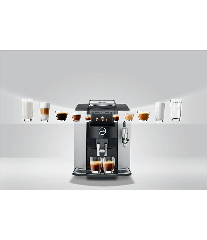 - Prepares 15 types of beverages, including ristretto, 2 ristretti, espresso, 2 espressi, coffee, 2 coffees, cappuccino, café latte, espresso macchiato, latte macchiato, flat white, portion of milk foam, portion of milk, hot water