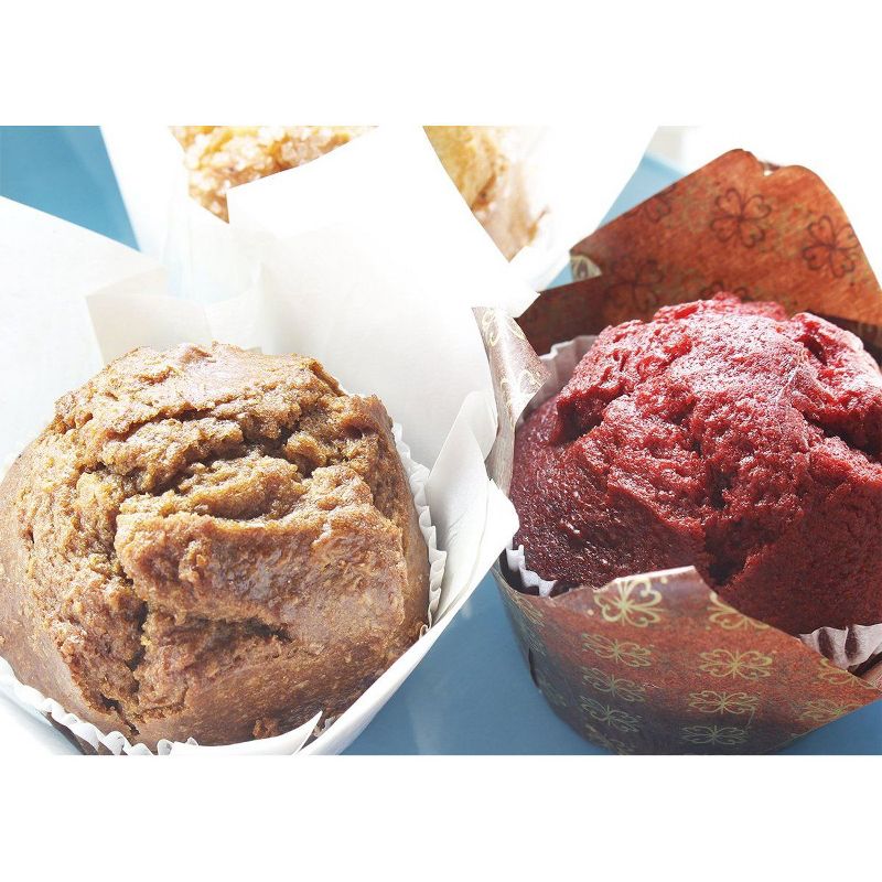 • Tulip Cupcake Liners: Bulk pack includes 100 paper cupcake and muffin wrappers in brown with decorative gold floral prints