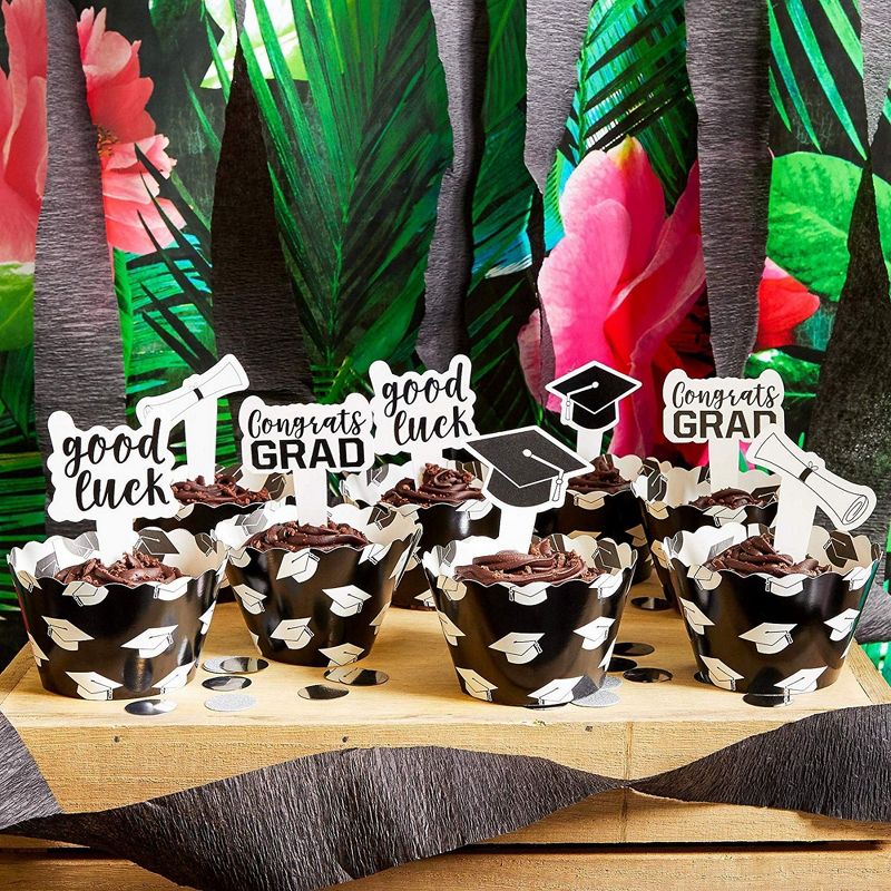 • GRADUATION PARTY SUPPLIES: Enhance the presentation of cupcakes, muffins, and brownies and desserts with these graduation cupcake wrappers and cake toppers