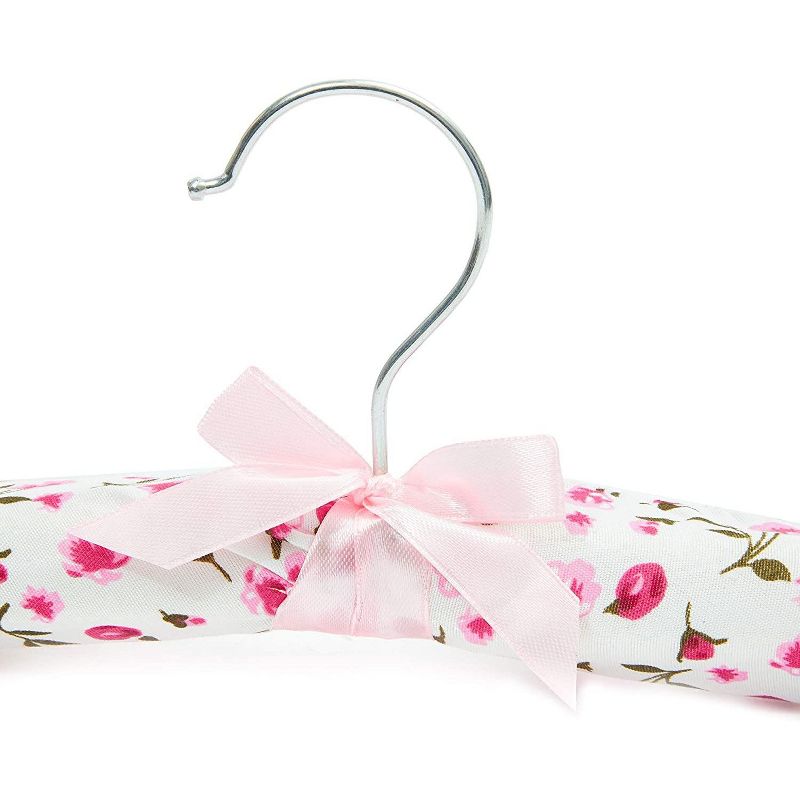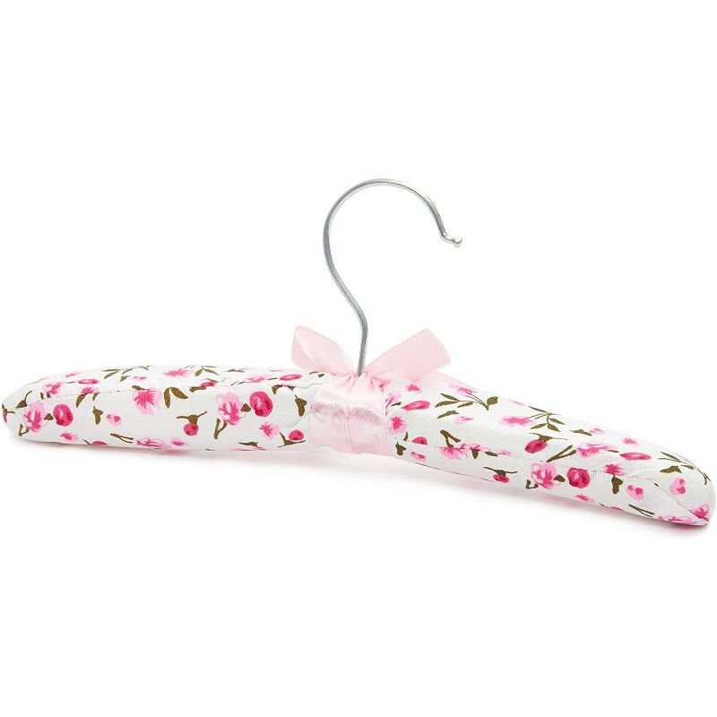 Hang your baby clothes, kids clothing, and delicates without worrying about wrinkles or scratches with these cute floral print satin padded hangers. Each hanger is soft and thick to hold and hang all types of children's clothing in your closet.