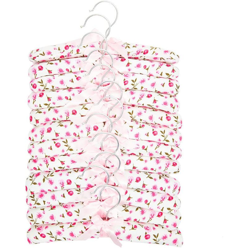 Satin Padded Hangers in Pink Floral Print, Kids Nursery (13 Inches, 12 Pack)