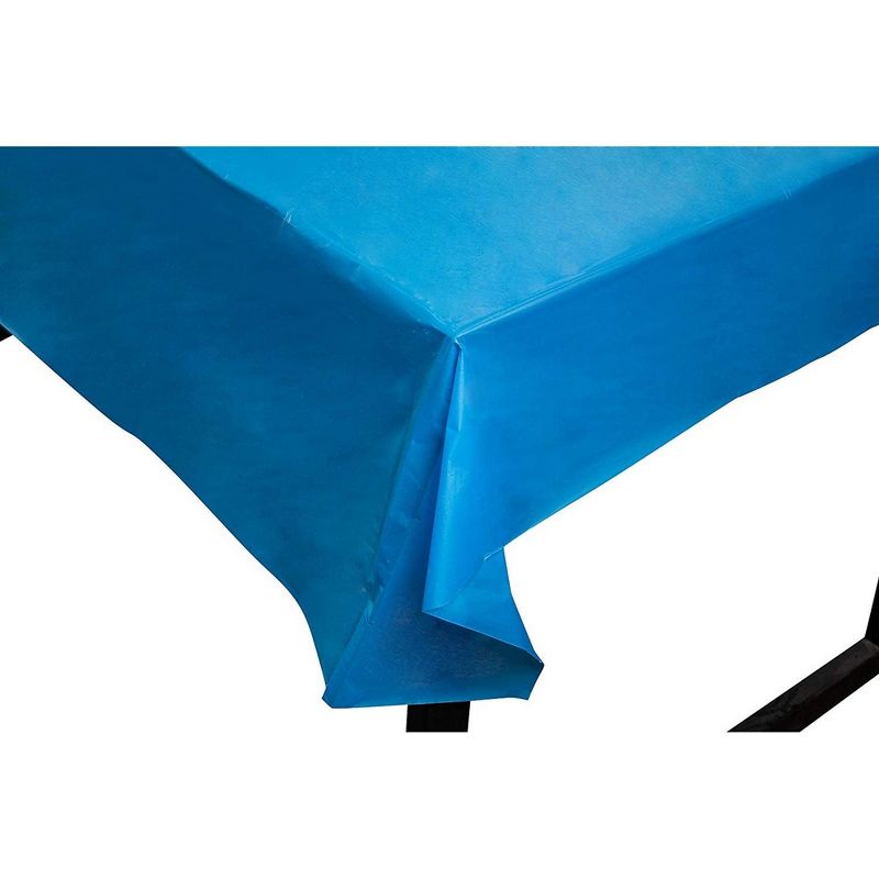 • SOLID BLUE TABLE COVERS: This pack of 12 blue table covers is ideal for your celebration! Have fun decorating your table tops with this all-blue plastic tablecloth as base.