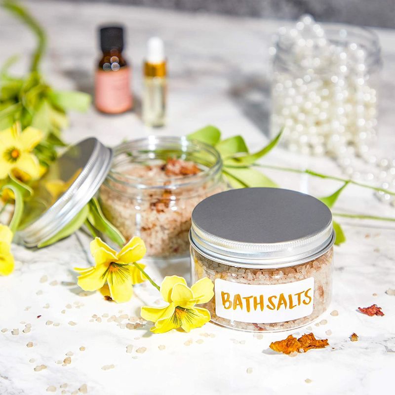 Clear Round Jars with Metal Lids and Labels (4 oz, 12 Pack)
