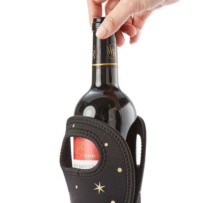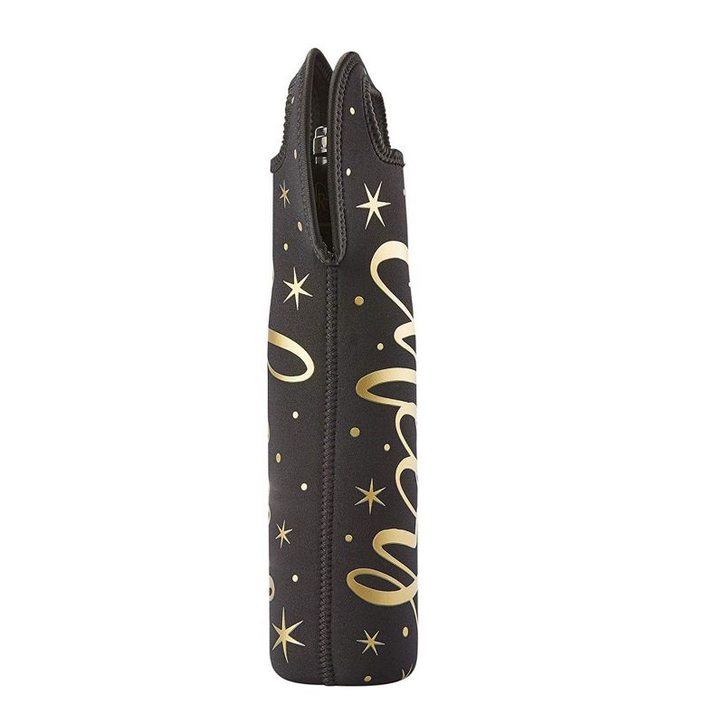 Designed to be the perfect wine gift or simply to carry around your own wine, these elegant wine tote bags are made of high-quality neoprene that helps keep the bottle safe and cool during transportation. Chill the bottle, stick it in the wine carrier and bring it to the party or give as a gift. The "CHEERS" text design in gold foil says it all.