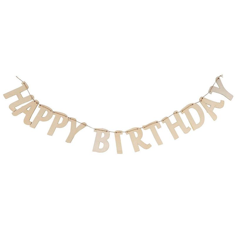 2 Wooden Happy Birthday Banner Decoration Party Supplies 41x4.5x0.09in Assembled x 1