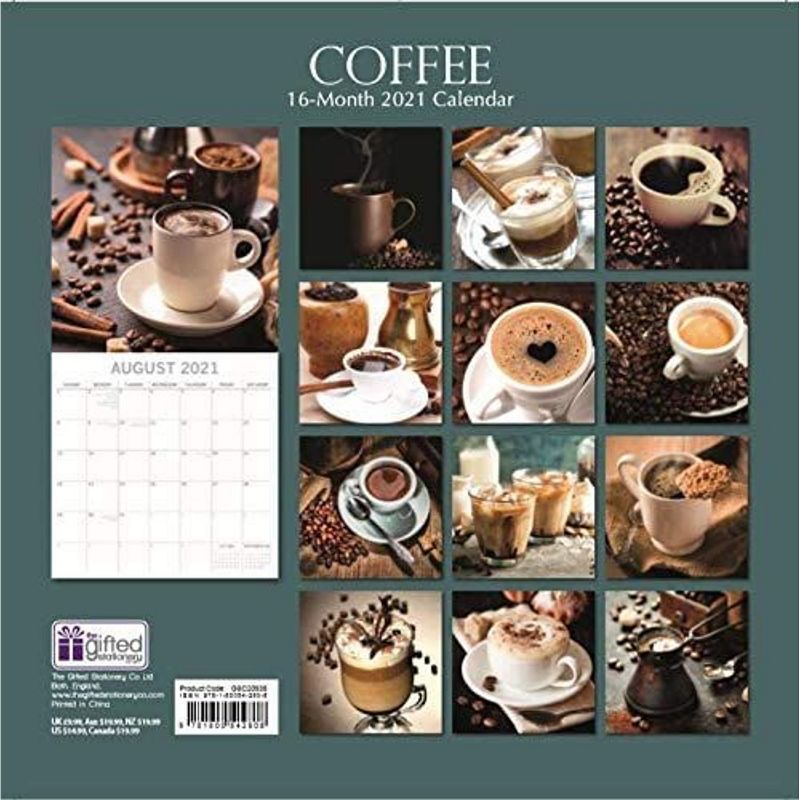 2021 Wall Calendar - Coffee, 12 x 12 Inch Monthly View, 16-Month, Includes 180 Reminder Stickers