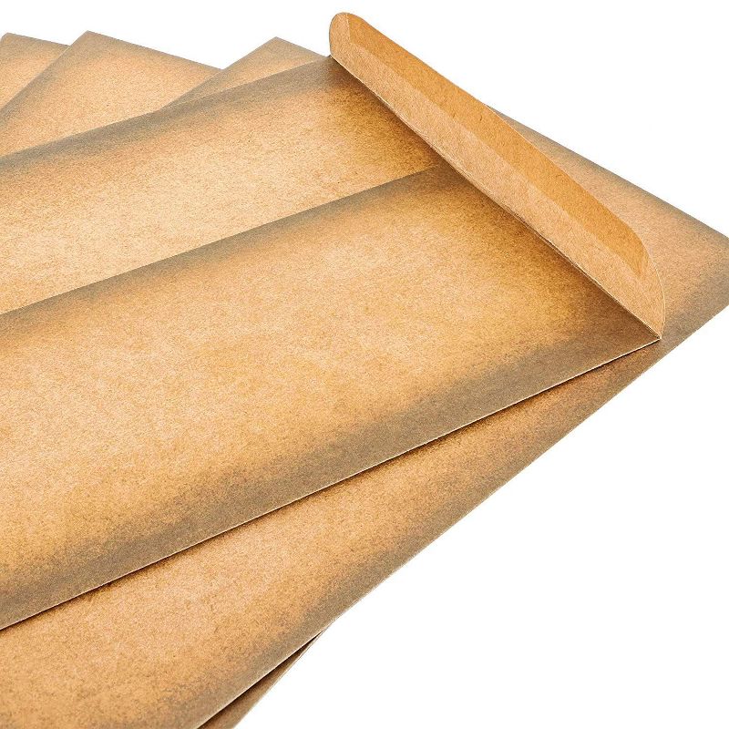 Includes 50 brown kraft paper envelopes. Great for both personal and business use. Use to mail letter, documents, direct mails, brochures etc. Use standard glue to seal flap easily for mail use. 120GSM durable quality paper; double sided antique finish design. 4.7 x 7.9 inches