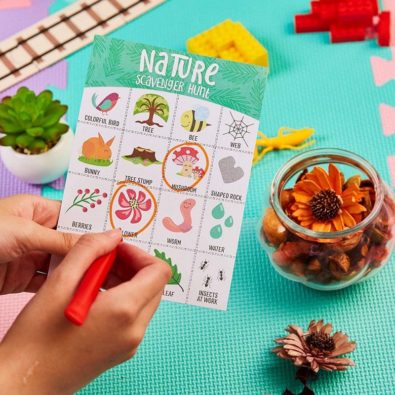 NATURE SCAVENGER HUNT: Let your kids or class spot up to 16 things in the great outdoors! They'll definitely have fun looking for colorful birds, flowers, fun shaped rocks, bunnies and more! Pack includes 50 game cards; perfect set for classroom field trips and big family vacations.