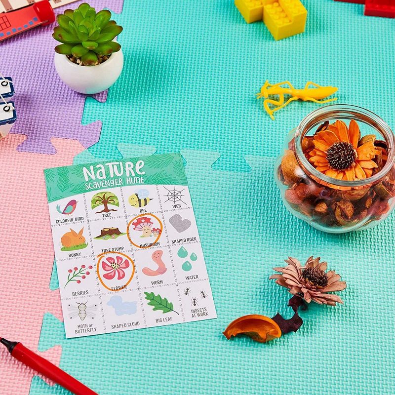 • DESIGNED FOR KIDS: (Cards feature same duplicate design) Made of 180gsm paper, making them sturdy, durable, and easy to write on. Kids can run around for their little nature treasure hunt without the cards getting damaged.
