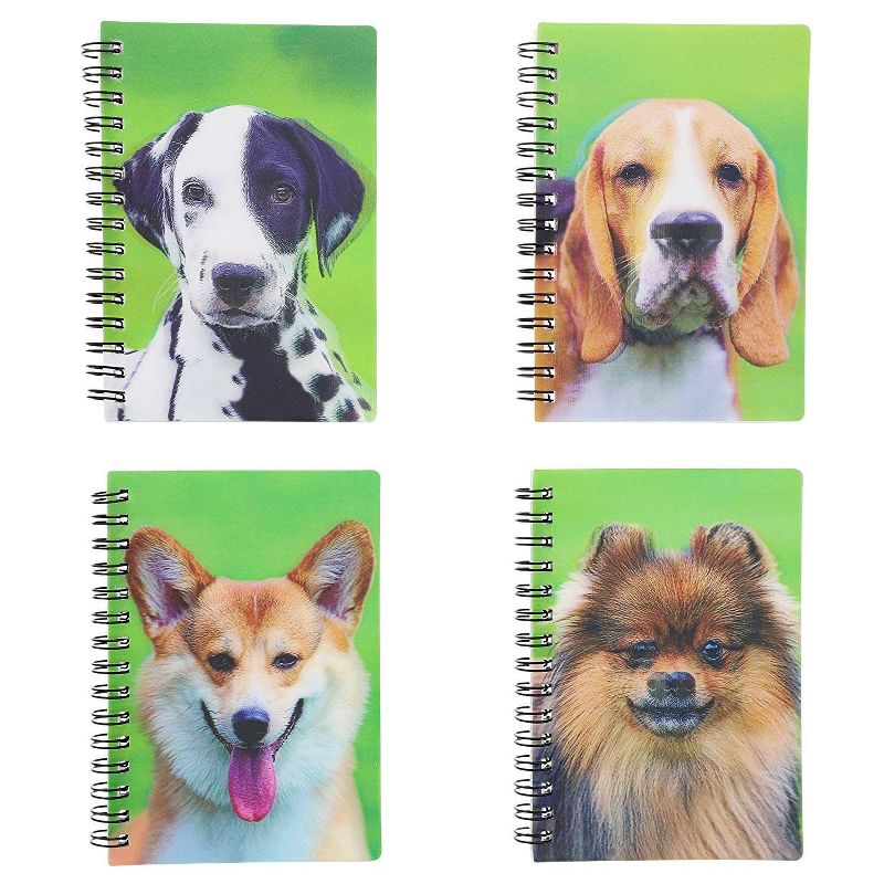 8x 3D Notebook Spiral Notepads Note Pads with Puppy Puppies, Dog Design 4" x 5" x 1