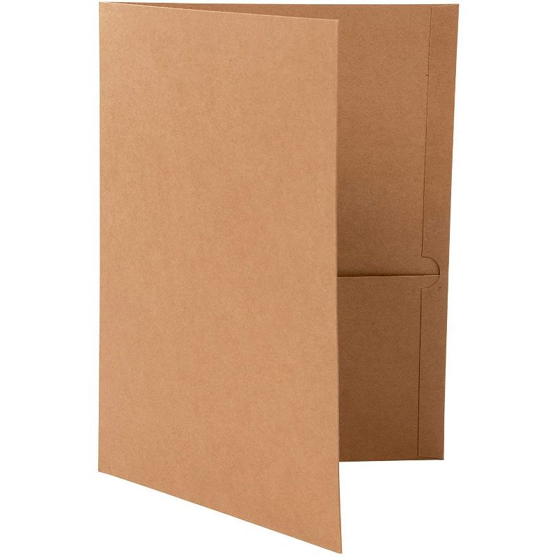 SET INCLUDES: 12 double-sided pocket folders in Brown, with a die-cut 4 x 2.4 inch cutout for holding business cards, which fits general name cards.