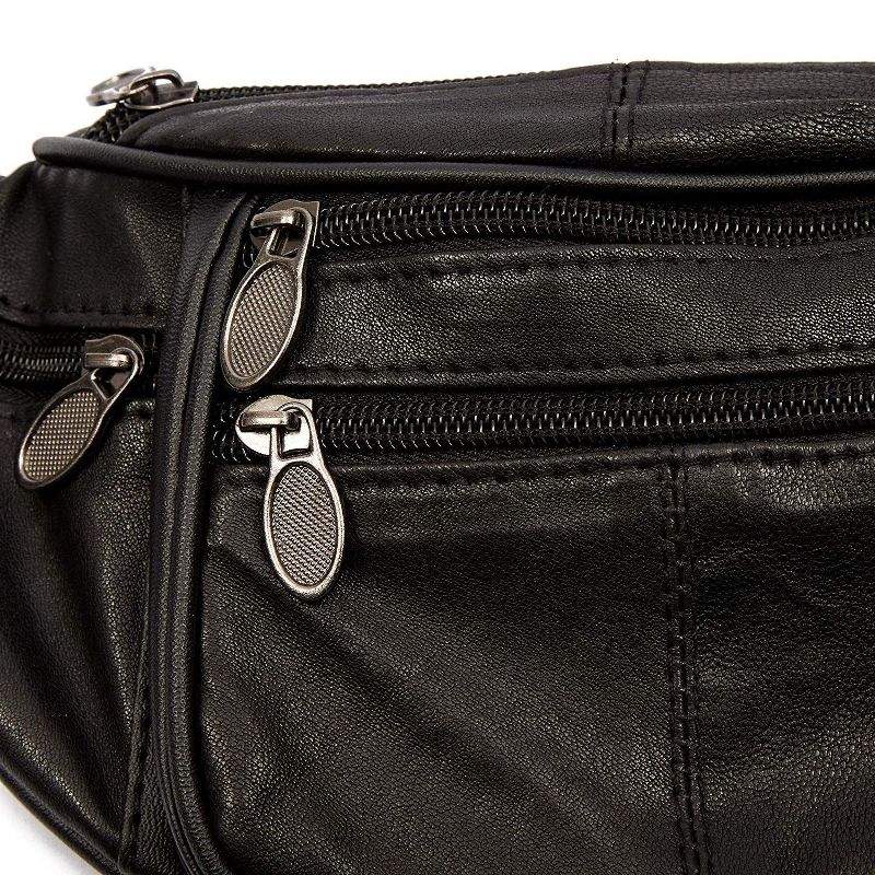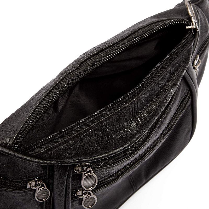 Black Fanny Pack Sheep Leather Waist Bag Pack for Men Women Travel Pouch Bag x 1