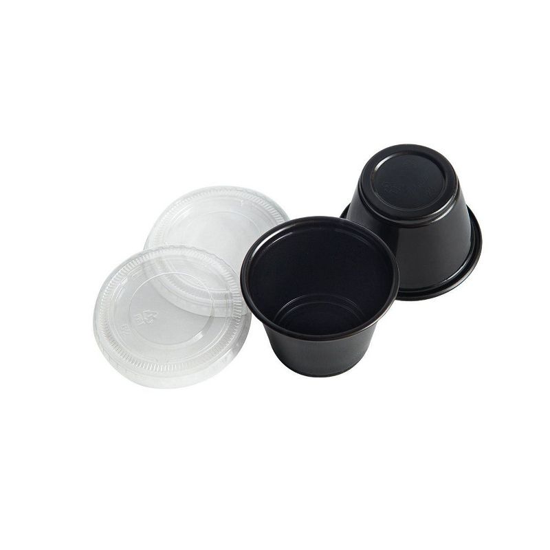 Plastic Portion Cups with Lids - 250-Piece Disposable to-go Sauce, Condiment, Sampling, Souffle, Jello Shot Containers, 2.5 Ounces, Black