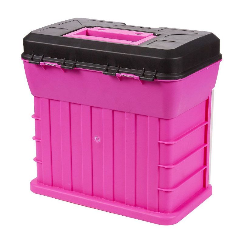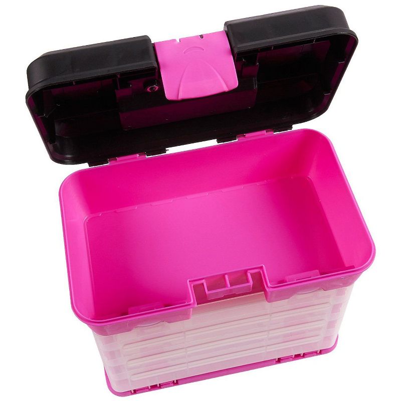 TOOLBOX: Includes a pink organizer box with 4 customizable clear matte slideout containers, each with up to 13 compartments.
