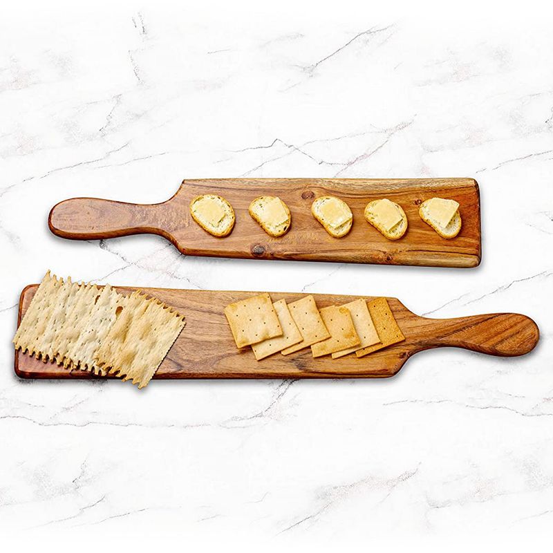It's always a good time to live your best life and entertain in style with the Acacia Wood Flat Appetizer Tray Set from Karma Gifts.