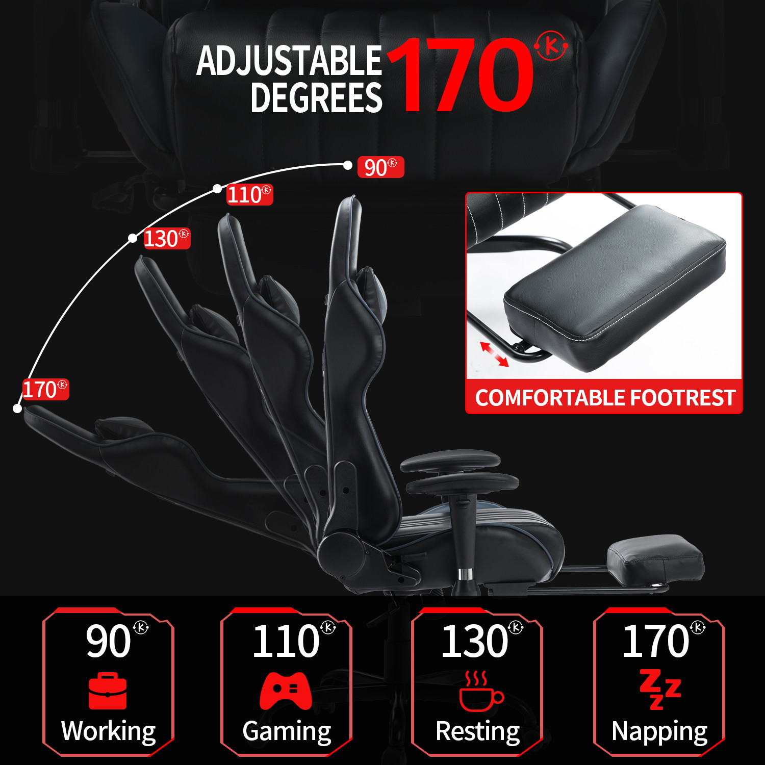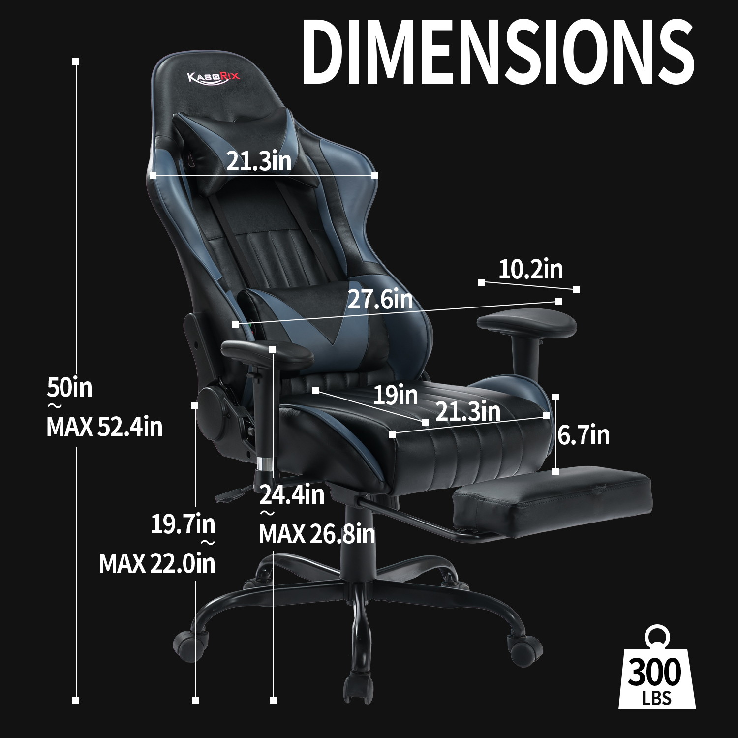 Upgrade Configuration: Our gaming chair’s gas lift is Class-3 verified by SGS, more stable, with a maximum load capacity of 300 pounds; Use the rubber pu wheel to protect the floor without scratches