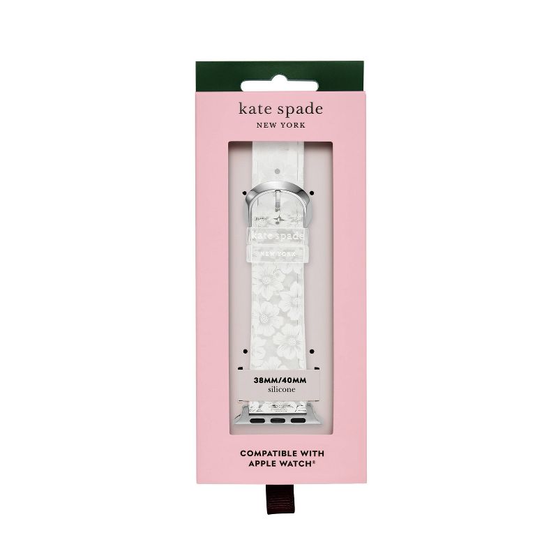 Kate Spade New York HollyHock Floral and Clear Band for Apple Watch® features a cream floral print and silver-tone buckle. It is made specifically for use with the Series 1, 2, 3, 4, 5, 6 and SE model Apple Watch® and fits both 38mm and 40mm styles. You can never have too much of a good thing. case in point: flowers! Apple Watch® is a trademark of Apple Inc.