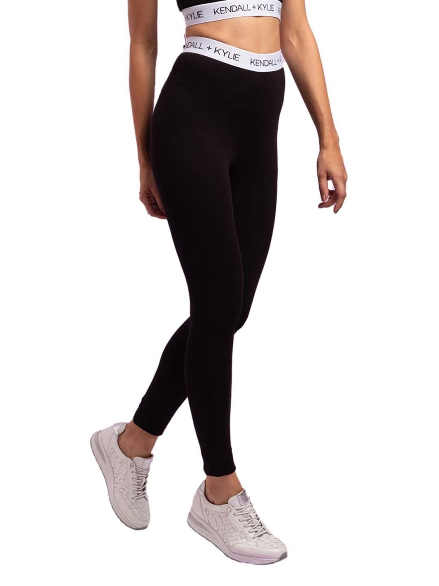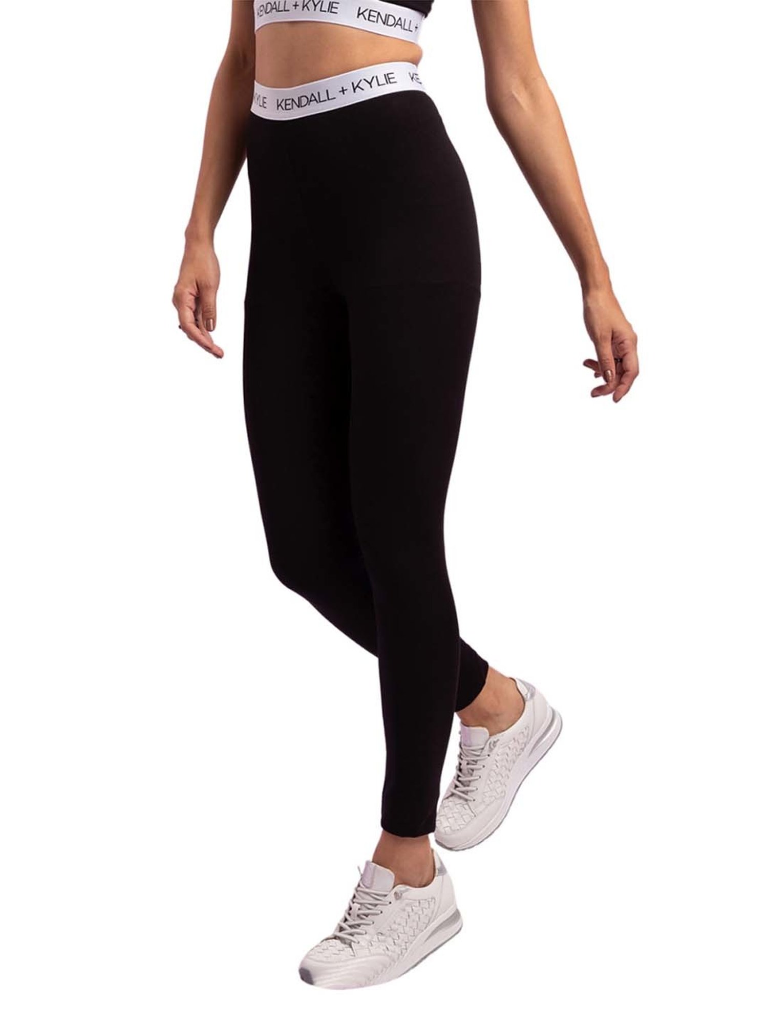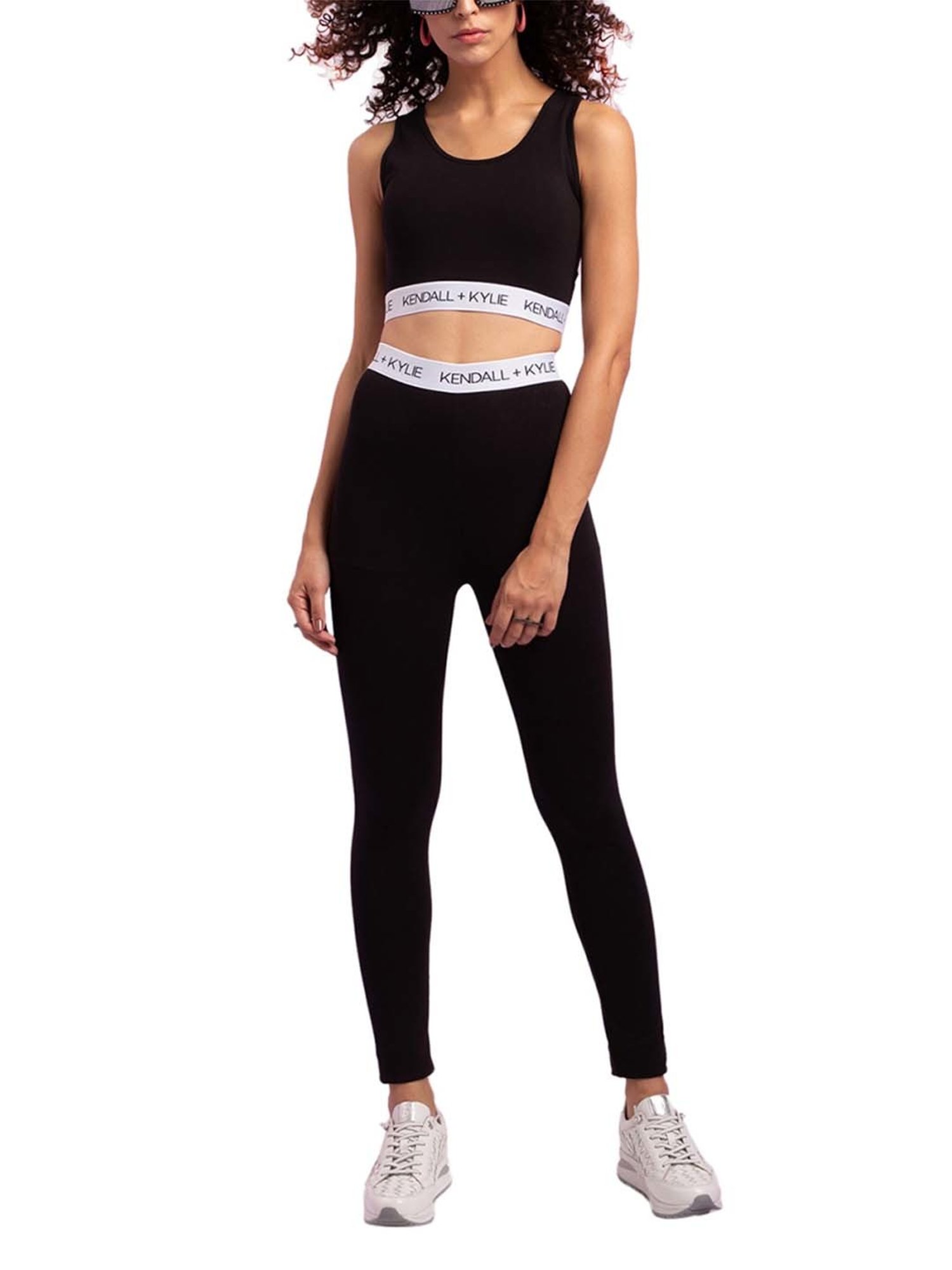Revamp your wardrobe with this pair of black sports tights from KENDALL + KYLIE. Tailored to sartorial perfection from premium quality fabric, it assures a soft and soothing touch against the skin. Join the league of fashion elites flaunting the sports staple.
