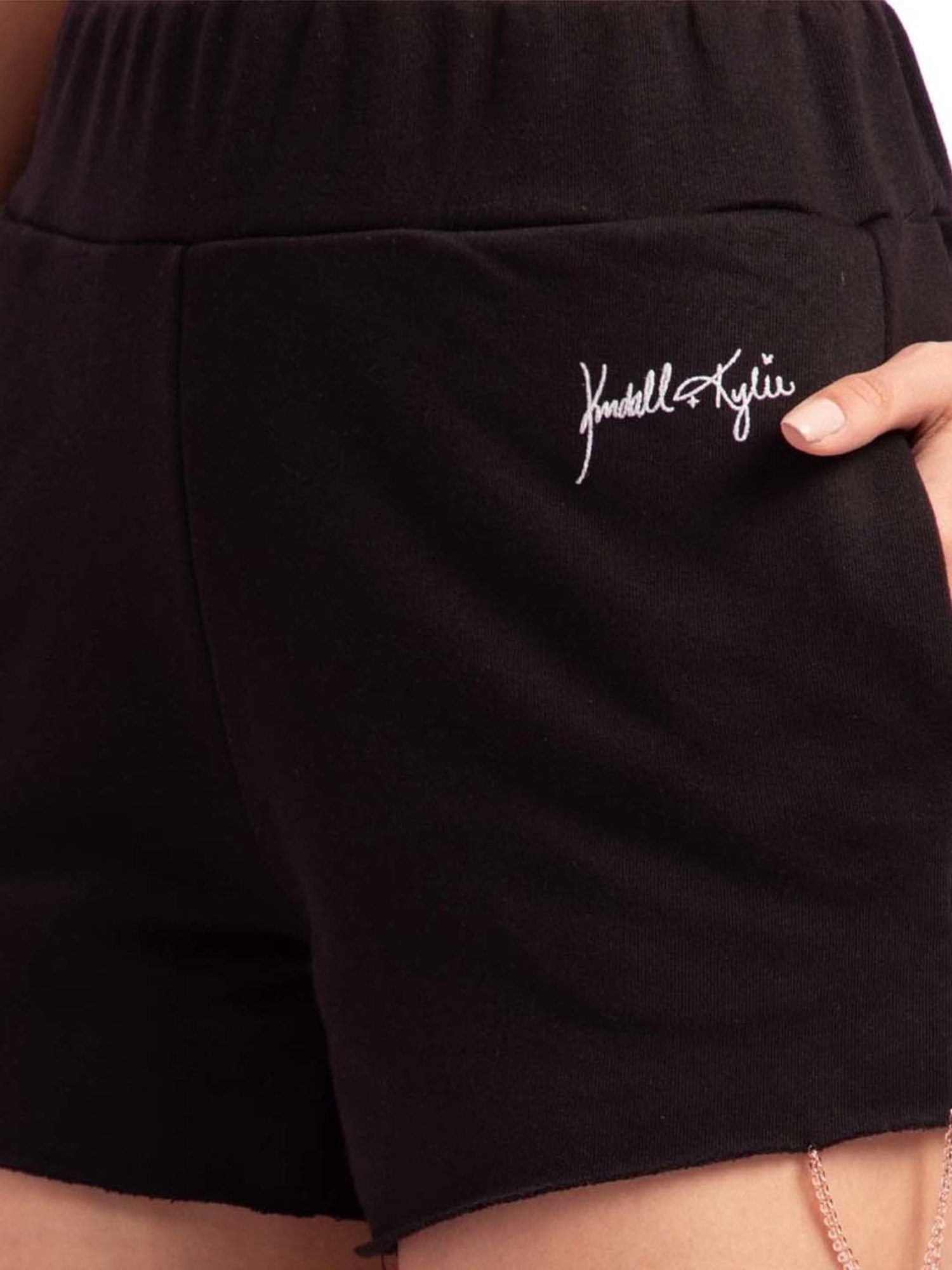 Rev up your wardrobe with this pair of black shorts from KENDALL + KYLIE. Tailored to sartorial perfection from premium quality fabric, it assures a soft and soothing touch against the skin. Join the league of fashion elites flaunting the staple.
