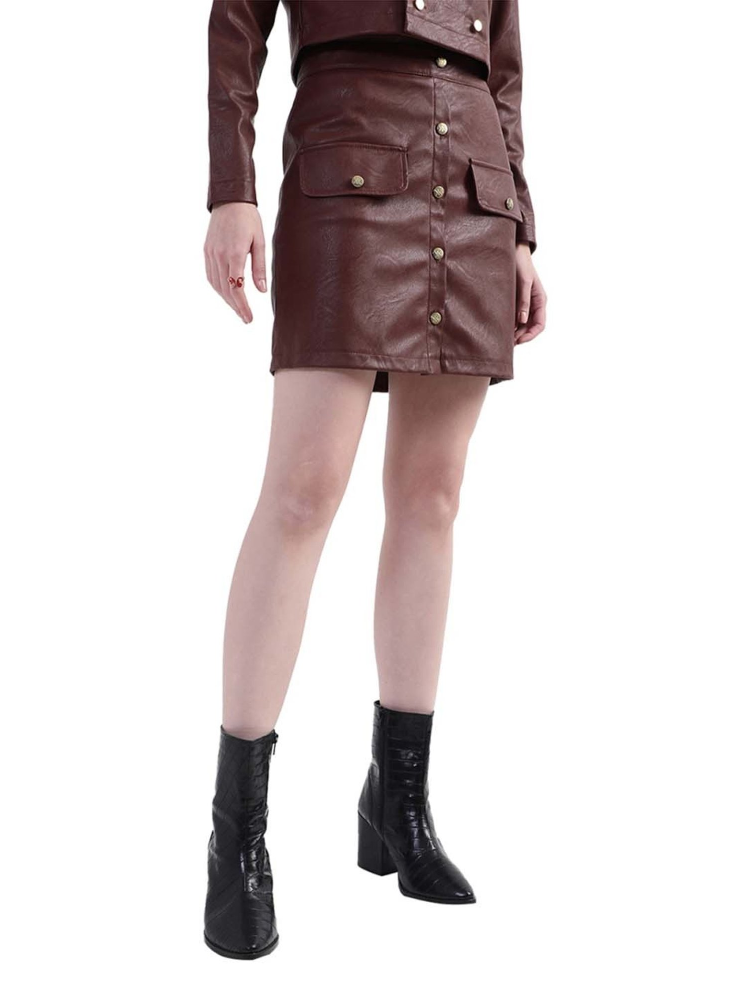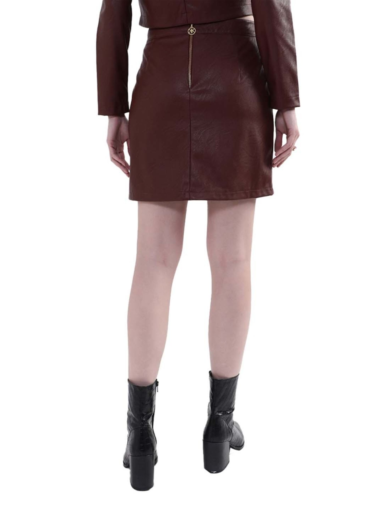Add zest and zing to your look by wearing this brown skirt from KENDALL + KYLIE. Tailored to sartorial perfection from premium quality fabric, it assures a soft and soothing touch against the skin. Join the league of fashion elites flaunting the staple.