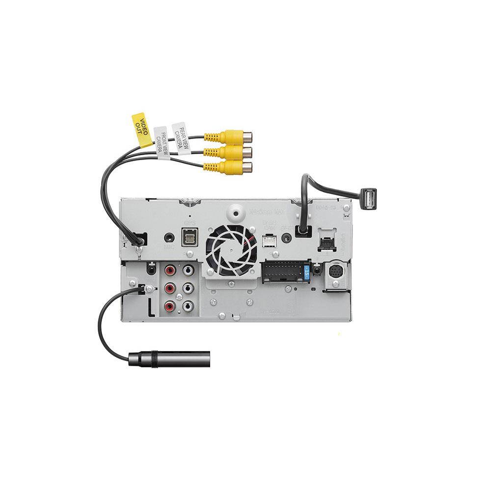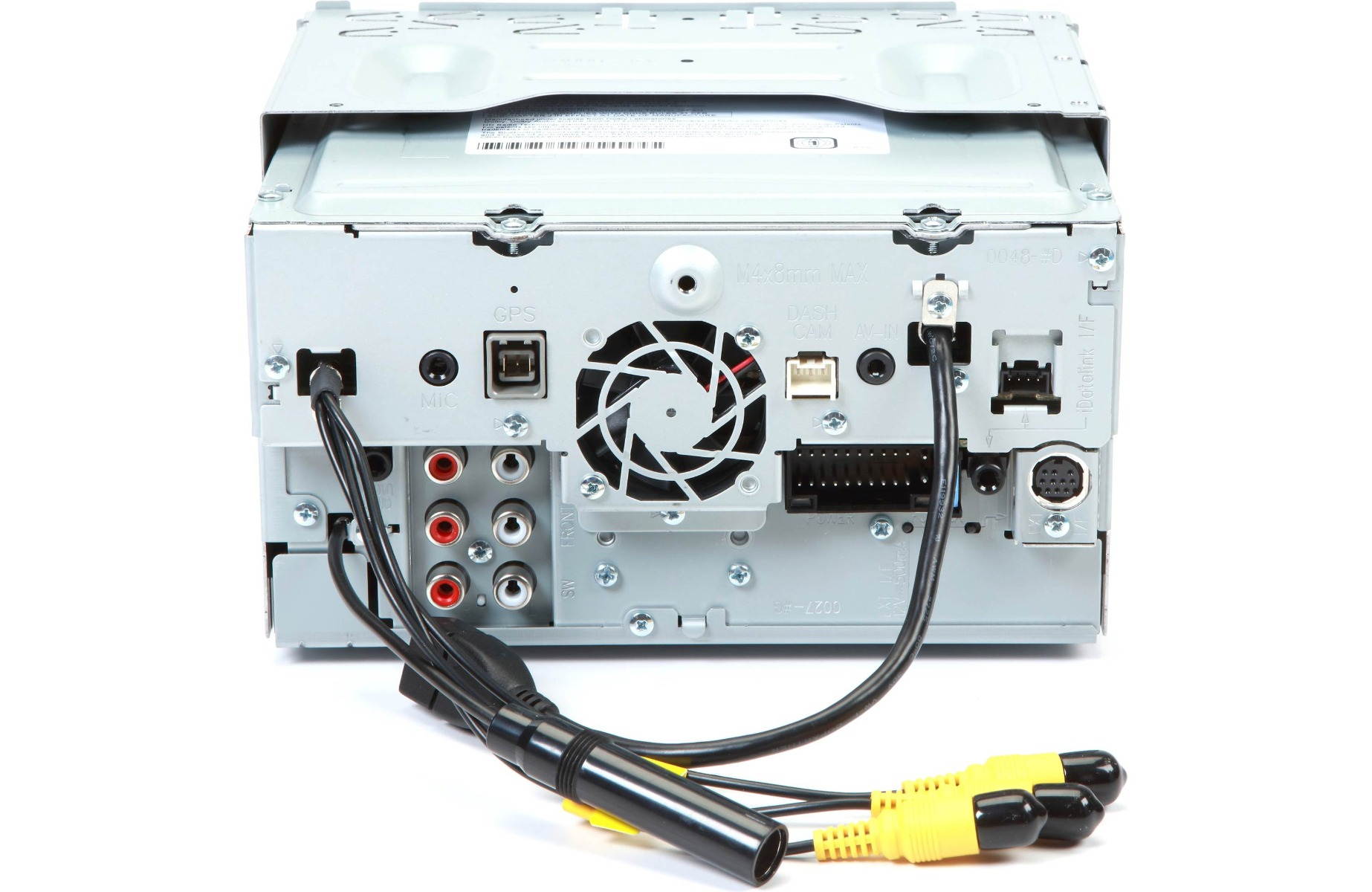- inputs: rear USB input; microSD card slot; rear A/V input; two camera inputs (including Kenwood DRV-N520 Drive Recorder input)