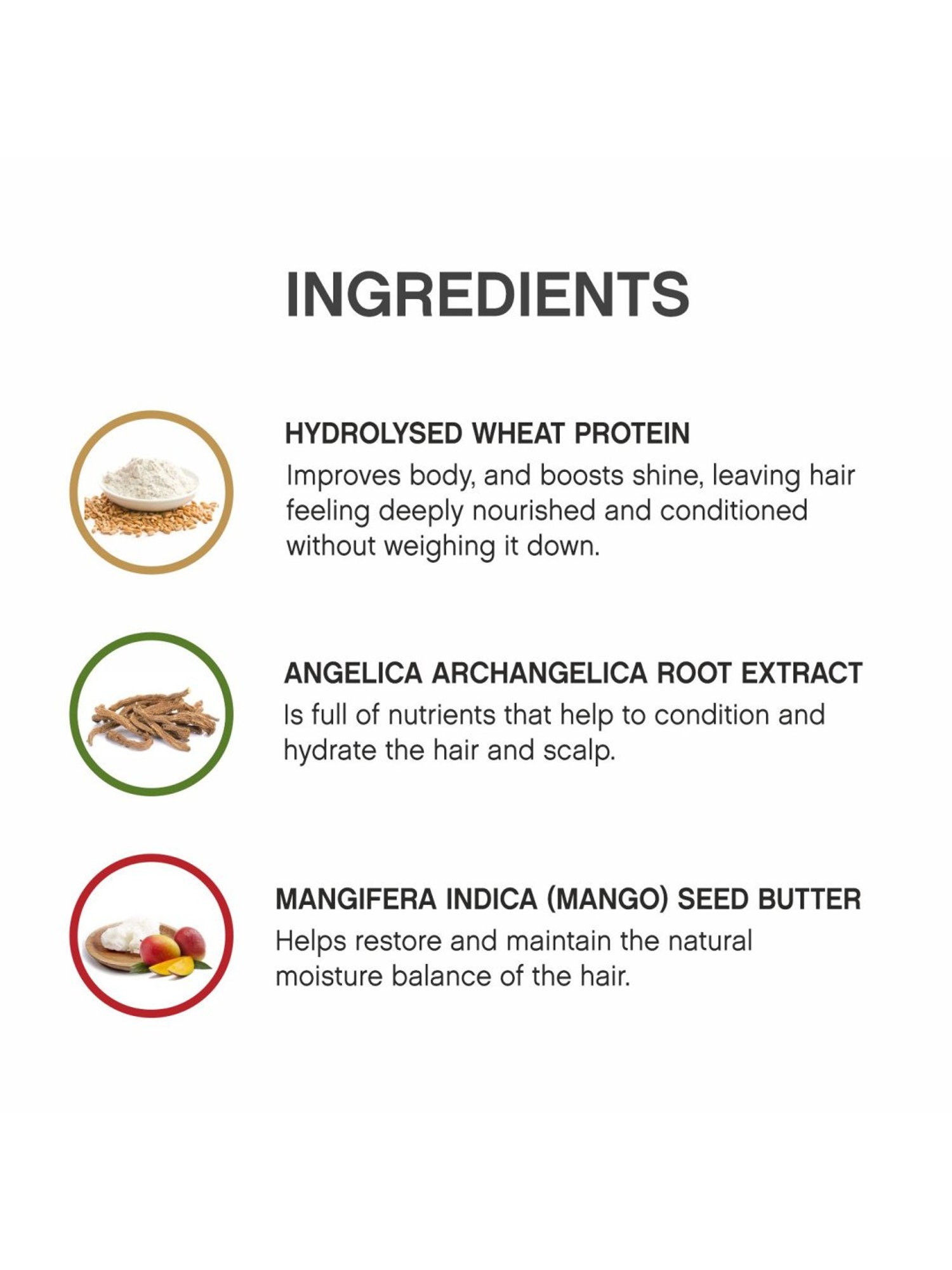 Composition: Water (Aqua) (Eau), Cetyl Alcohol, Glycerin, Aloe Barbadensis Leaf Juice, Behentrimonium Chloride, Theobroma Cacao (Cocoa) Seed Butter, Mangifera Indica (Mango) Seed Butter, Citrus Reticulata (Tangerine) Peel Oil, Angelica Archangelica Extract, Hydrolyzed Wheat Protein, Isopropyl Alcohol, Cetrimonium Chloride, Phenoxyethanol, Benzoic Acid, Dehydroacetic Acid, Potassium Sorbate, Sodium Hydroxide, Fragrance (Parfum), Benzyl Benzoate, Limonene