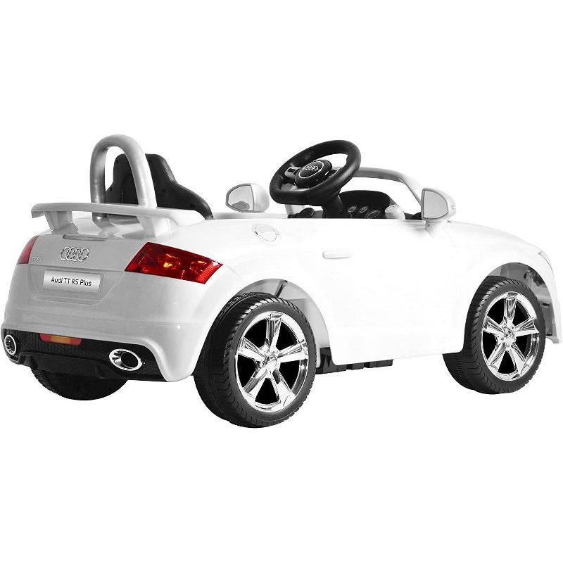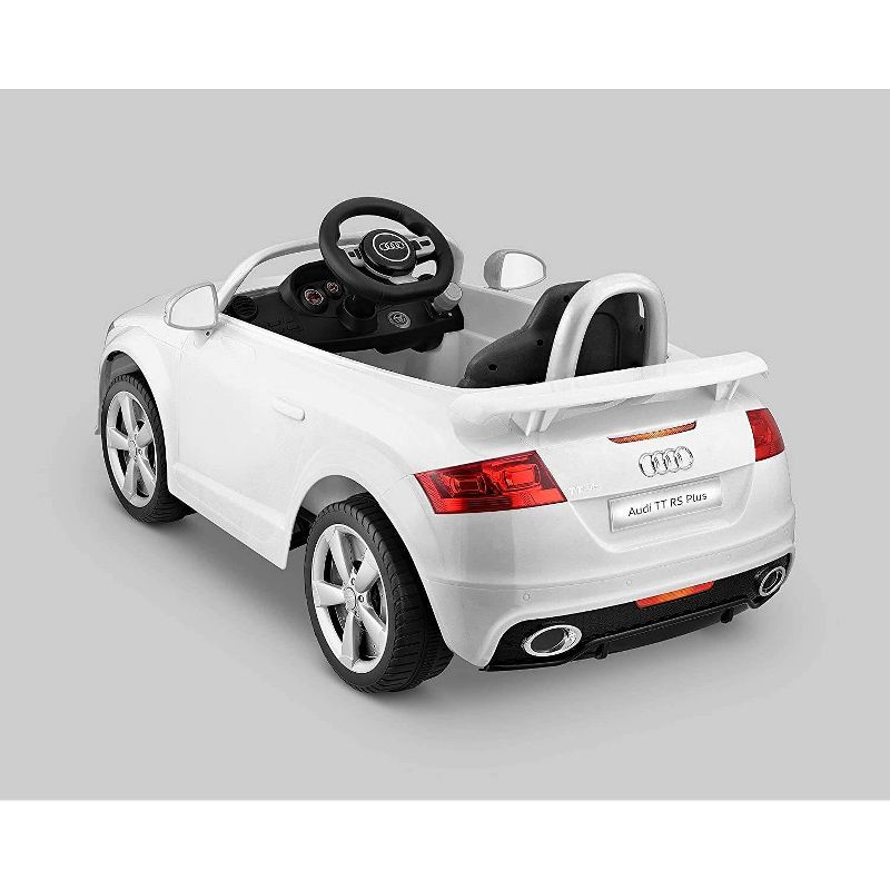 Your Kids can now have their own Audi TT RS, 6 volt battery-powered ride-on. The car's interior keeps young drivers entertained with electronic sound buttons that play different authentic effects. The 6-volt battery-powered ride-on toy drives 2.5 mph forward and 2.5 mph in reverse to give your child a low-risk, high-fun driving experience. Your little one will love cruising around in this cool Ride-On and it will be sure to provide hours of fun and entertainment.
