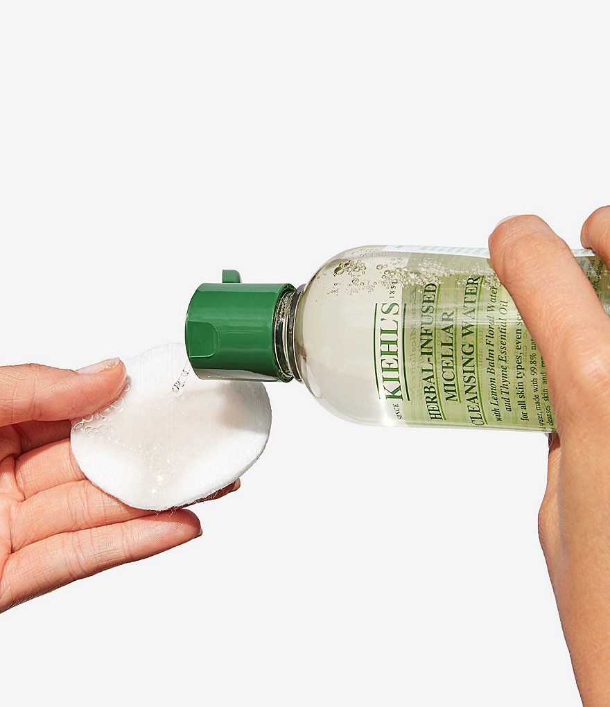 Cleanse and hydrate skin with Kiehl's incredibly gentle micellar water. This powerful herbal water uses micellar technology to effectively remove makeup, dirt and oil with a cotton pad. In addition to cleansing, Kiehl's efficacious micellar water benefits skin with 24-hour hydration. Infused with Thyme Essential Oil and Lemon Balm Floral Water, this cleansing water is formulated with 99.8% naturally derived ingredients.* With a fresh herbal aroma, this all-in-one micellar water leaves skin cleansed, soft and refreshed.