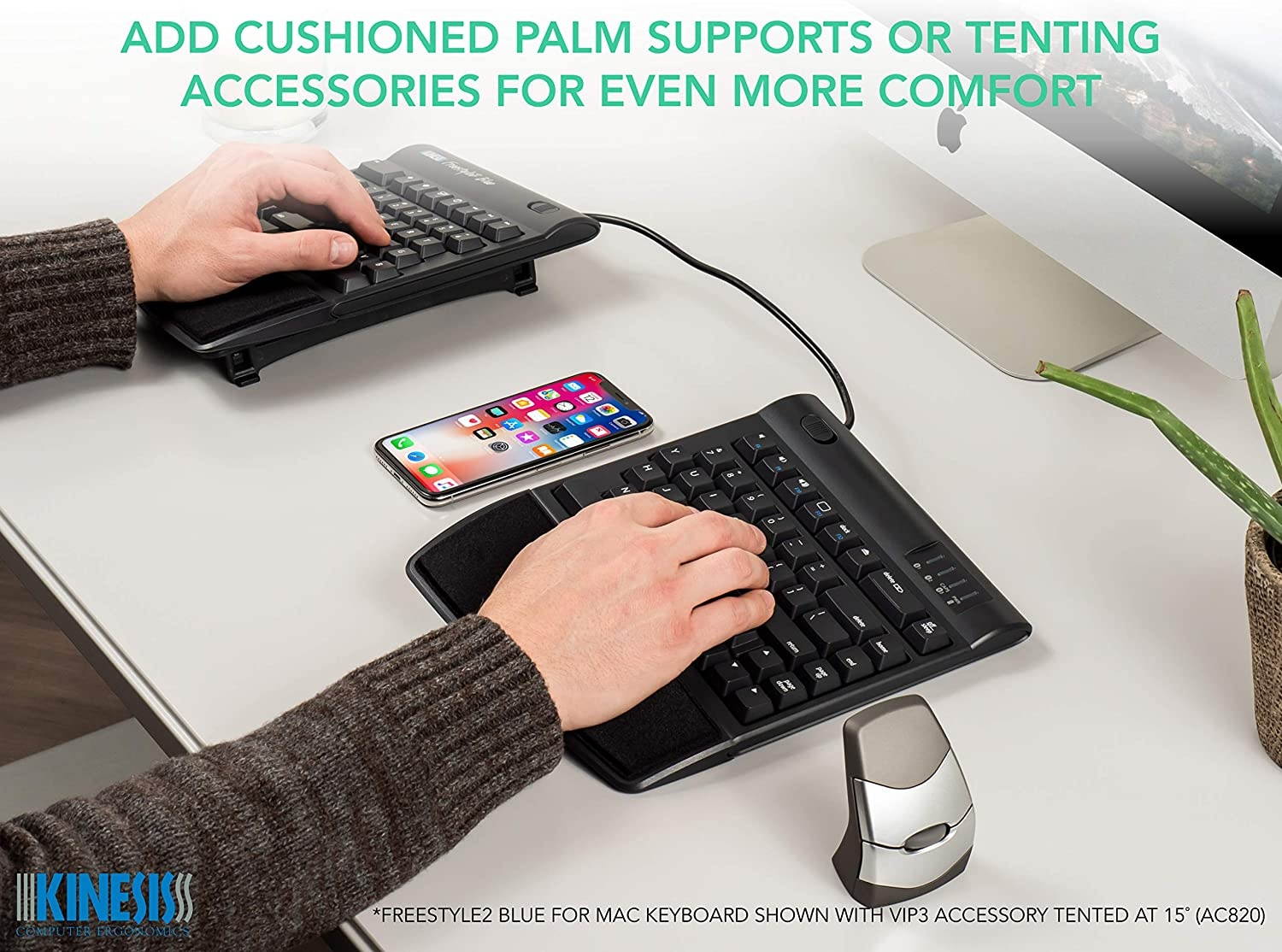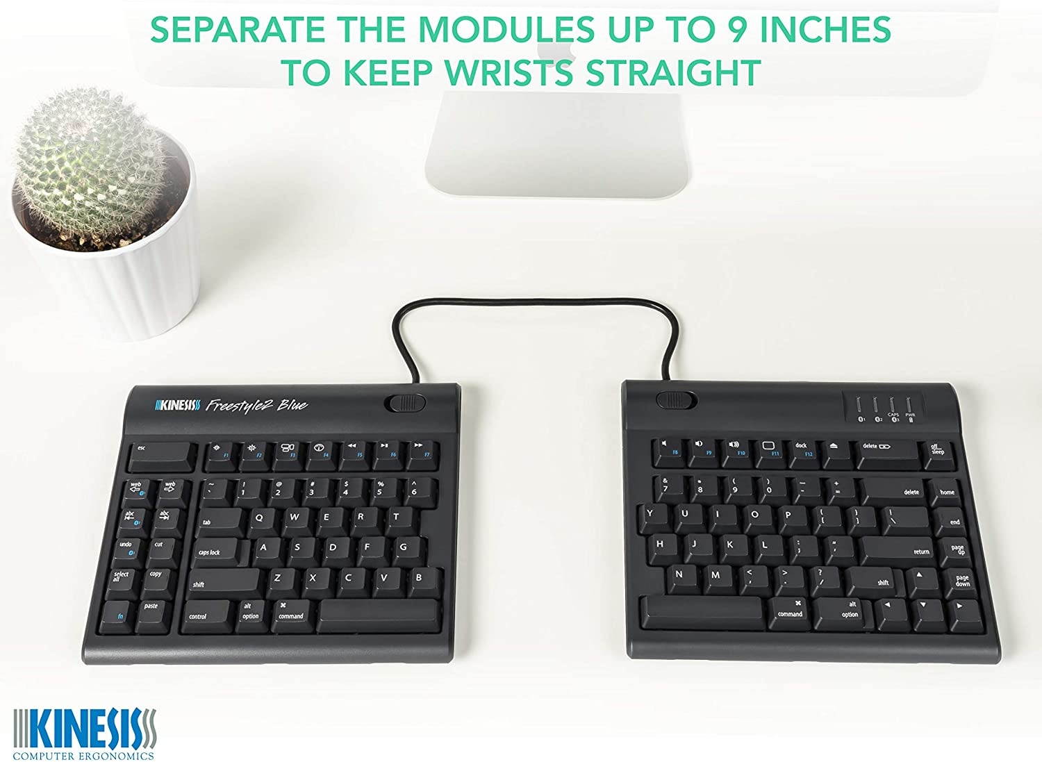 The Freestyle2 Blue is the most versatile wireless ergonomic keyboard on the market. and is designed to adapt to your body type and preferences to increase your comfort and boost your productivity. Customize the position of the keyboard modules with adjustable split, splay and available tenting to achieve natural positions for your hands, wrists, and forearms to reduce static muscle tension and strain.