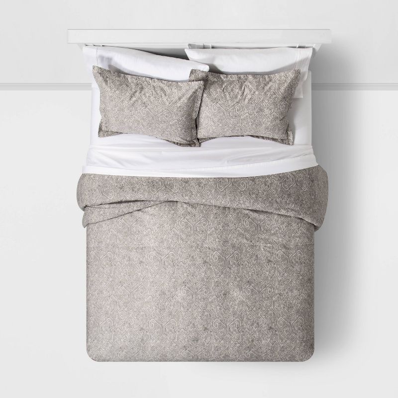 Add eye-catching, understated style to your master suite or guest bedroom with this Family-Friendly Medallion Comforter & Sham set from Thresholdâ„¢. Crafted from a soft, comfortable and breathable fabric, this comforter and sham set makes a decorative update to your bedroom decor that is equally cozy, and is made to withstand the everyday challenges that kids and pets can bring. Featuring classic medallion patterns, this bedding set with a reversible comforter brings classic elegance and a plush feel to the top of your bed. The matching shams with flanged edges give a neat finished appeal, and come with an envelope closure to keep your pillow neatly tucked in.