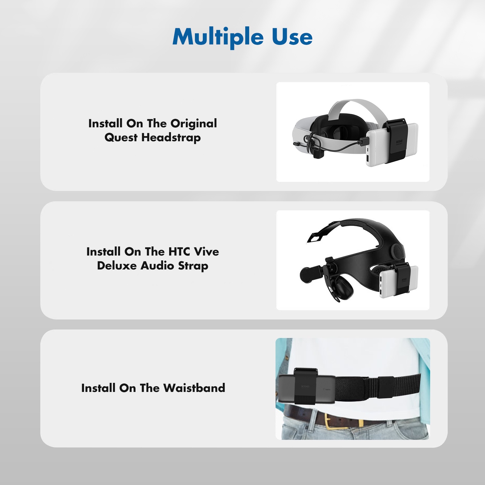 VR power bank fixing strap allows you to carry your mobile power supply with you. When you are playing the VR game, you no longer have to worry about the all-in-one VR headset running out of power and terminate the game halfway
