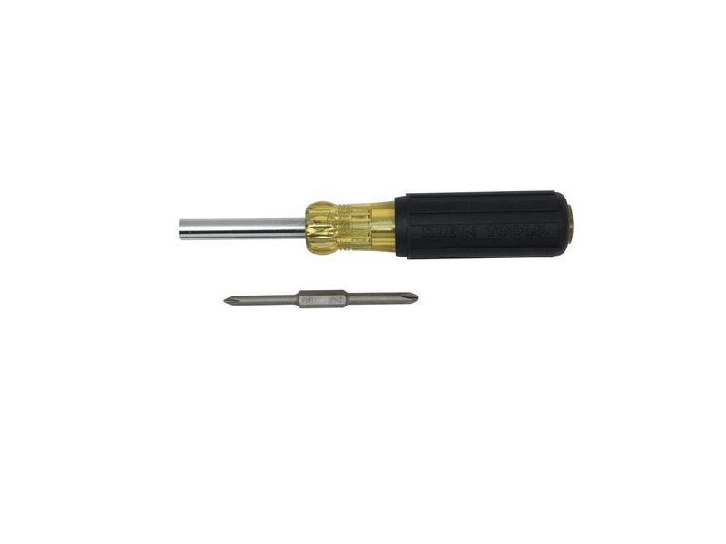Our extended-reach multi-bit screwdrivers and nut drivers provide longer reach than traditional Klein multi-bit drivers for multiple common bits. The extra-long shafts also feature a small diameter for a more comfortable fit in tight spaces. Cushion-Grip handles provide superior torque and comfort. Multi-bit screwdriver with interchangeable shaft holds 4 universal tips and converts to 2 nut driver sizes. Extended shafts and blades provide 39-percent longer reach. Extra-long shaft provides full reach of 4 standard-blade screwdriver. Small diameter shaft for comfortable grip and quick, easy turning. Contains: 3/16-Inch (5 mm) and 1/4-Inch (6 mm) slotted, #1 and #2 Phillips, 1/4-Inch (6 mm) and 5/16-Inch (8 mm) nut drivers.