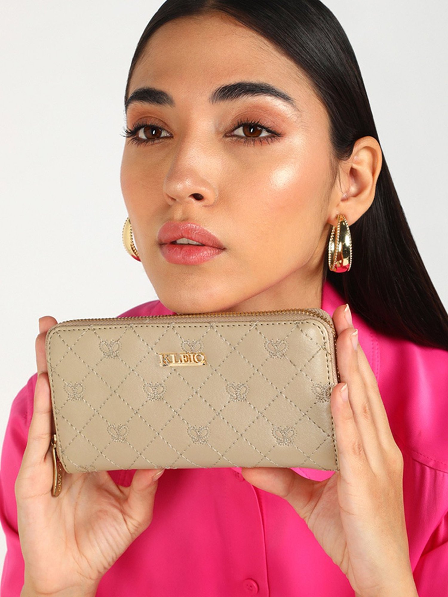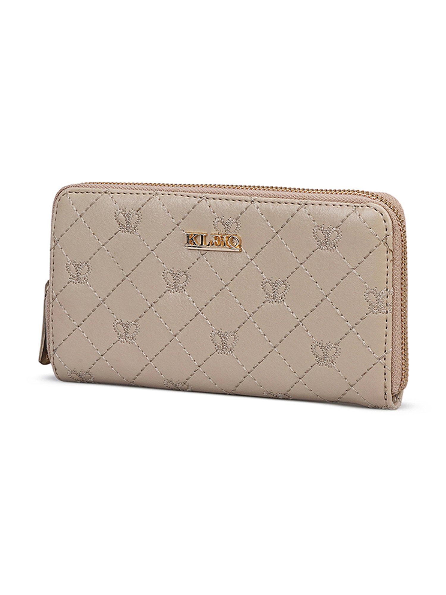 Organize your monetary essentials easily with this multipurpose Zip Wallet from KLEIO. This elegant zip wallet in a solid color makes a versatile piece in your everyday accessories, and its size easily Hold in your purse. It features a rectangular structured shape with a self-geometric design on the front for modern flair. Designed with a secure zip closure on the main compartment, the practical wallet opens to reveal an inner zip pocket and multiple bill compartments to make organization neat and simple.