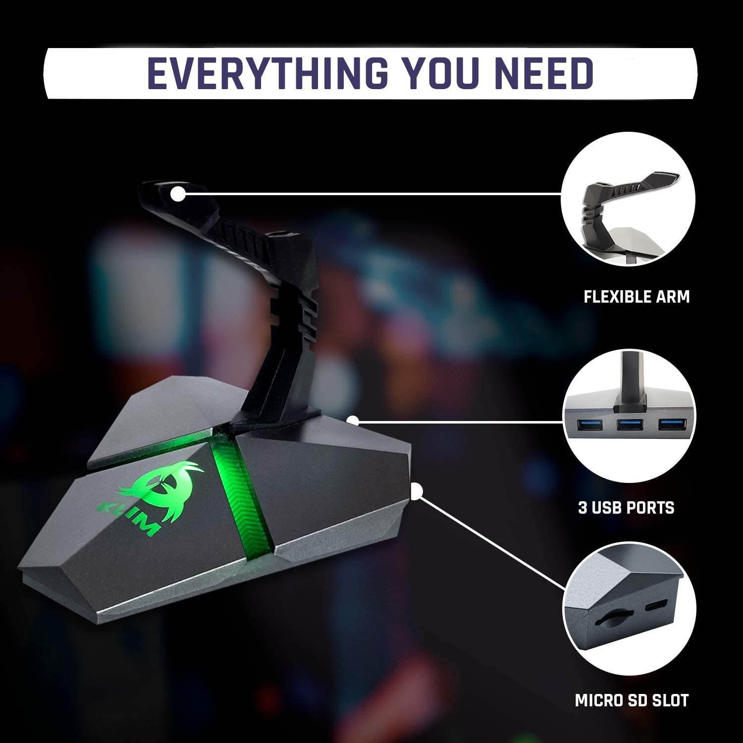 ? PERFECT CONTROL. This bungee extension allows you to perfectly control your mouse while avoiding any blocks or disruptions. This allows for perfect fluidity. The bungee extension is completely stable and the arm is flexible.? FULFILLS YOUR USB PORT NEEDS. With the latest USB 3.0 technology and superior power supply, experience data transfer rates of up to 5 Gb/s. The arm is detachable if you wish to only use KLIM Bungee as a USB hub.? BEST ON THE MARKET. The KLIM Bungee is perfect for your gaming setup.