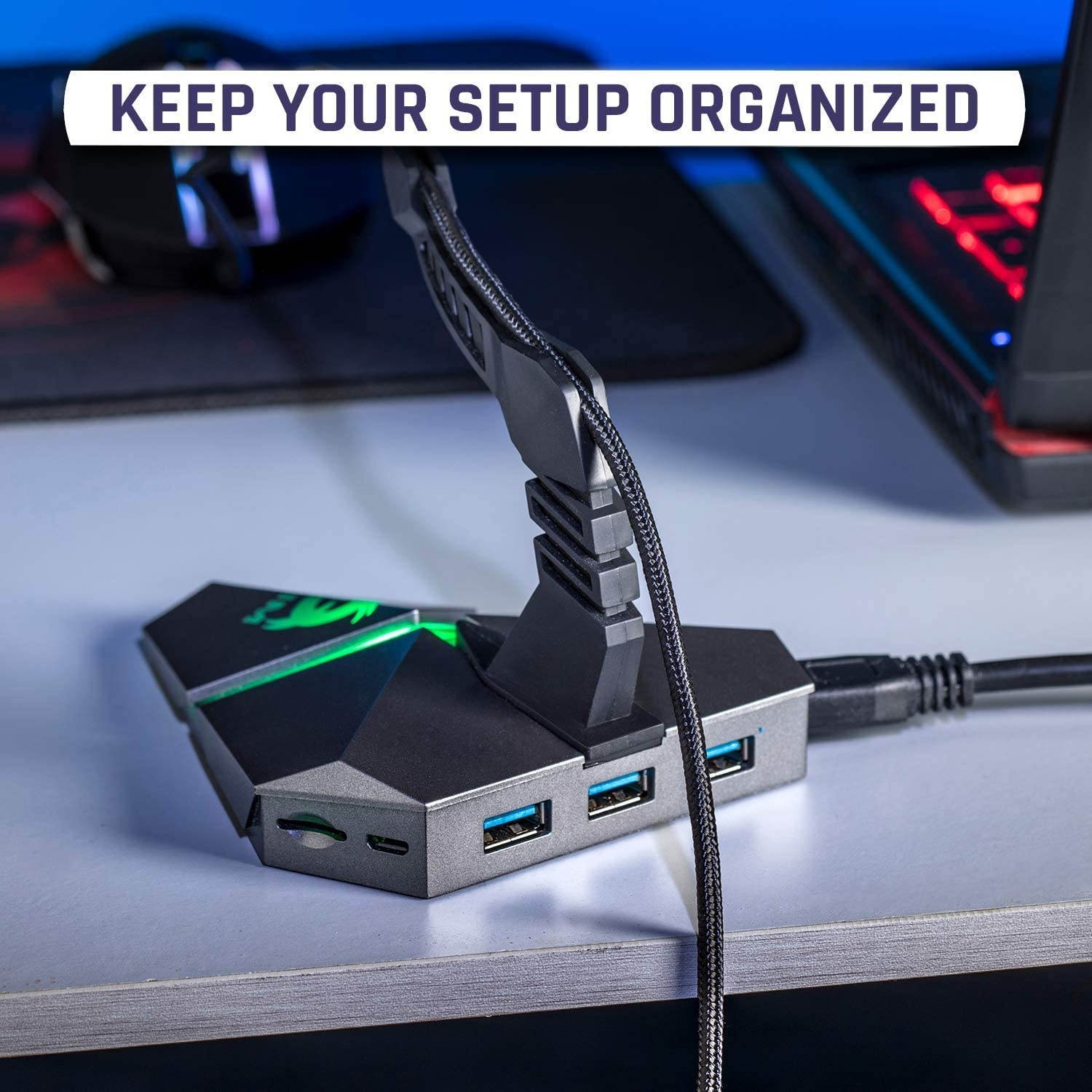 ? REDUCE CLUTTER ON YOUR DESK. If you're like us, you like to keep your desk organised with as little clutter as possible, this bungee responds to both these criteria. It's also multifunctional with three USB 3.0 ports, a micro USB port and a handy TF/ Micro SD card slot.