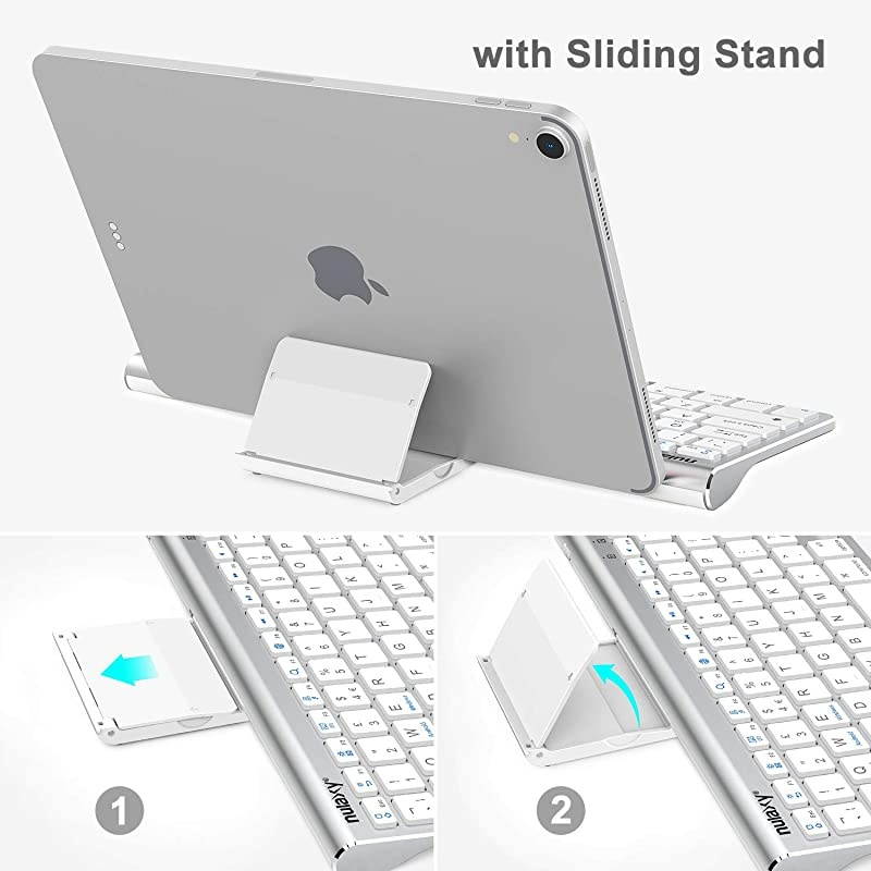 ***** **********Best Quality Guranteed. *****SPACE-SAVING SLIDING STANDDesign of the sliding stand helps to save space by sliding in and out of the top of the keyboard. You can put your phone or tablet on the stand; suitable for 4.0 - 10.5 inch devices. *****UNIVERSAL COMPATIBILITYCompatible with iOS, Android and Windows, including iPad Air 3/2/1, iPad Pro, iPad Mini 4/3/2/1, iPad 4/3/ 2, iPhone X/8/8 Plus, surface tablet, smart phones and etc. *****COMFORTABLE KEYSType quietly and effortlessly. KM13 full size universal keyboard provides a very comfortable and wonderful typing experience.