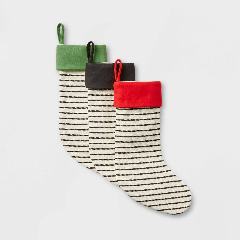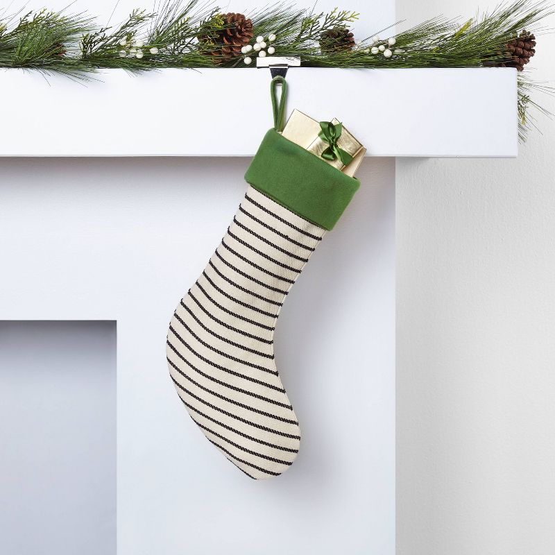 Delight your gift-giving arrangement for the holidays when you hang up the Knit Stripe Christmas Stocking from Wondershop™. This 20-inch Christmas stocking features a flat knit construction for a soft feel and cozy look that'll blend in beautifully with the rest of your seasonal decor. It comes in green and white for a joyful look, along with an attached loop that makes it a breeze to hang from your mantel, staircase or wall. Whether you fill it with candy, socks, gift cards, lip balm or any other small trinkets, this knit striped stocking rounds out your holiday decor in merry style.