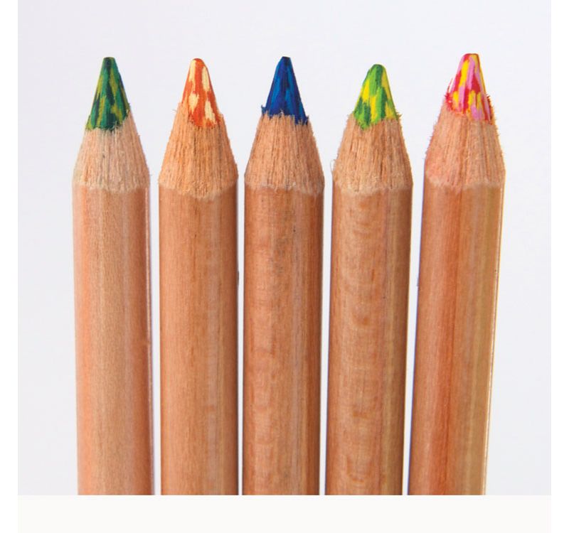 • Each pencil contains three complementary shades and draws a multi-colored line.
