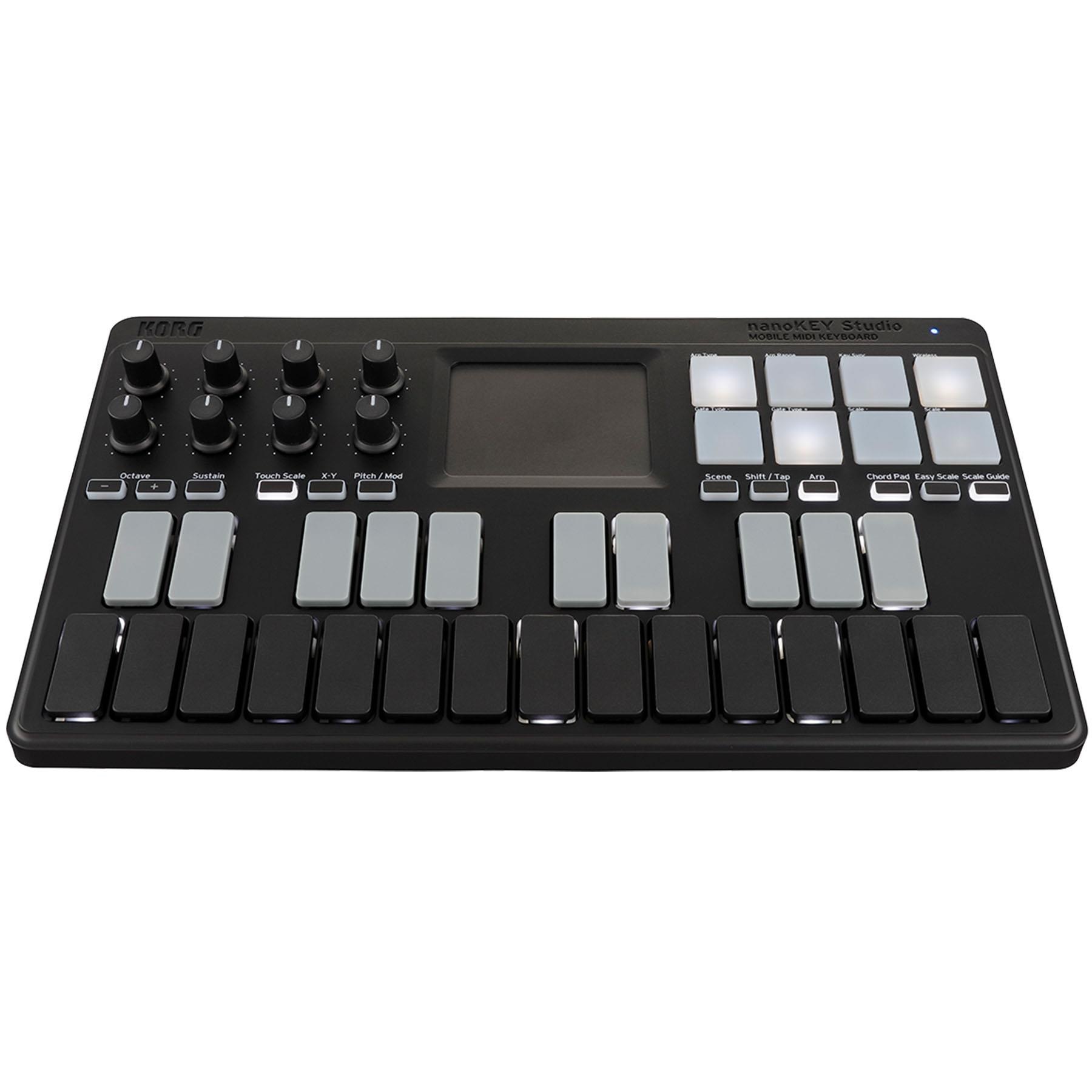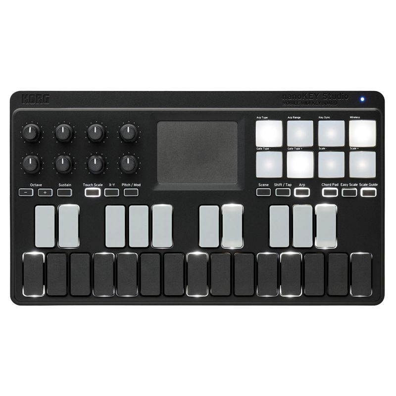 Building upon the successful nanoSERIES2 format, the new nanoSTUDIO line continues its ongoing development of comprehensive control, expanded functionality, Bluetooth and USB MIDI connectivity. The nanoKEY combines a 25-note backlit velocity-sensitive keyboard with 8 backlit velocity-sensitive pads, 8 encoders, a Kaoss pad for note, scale and CC entry, sustain and octave buttons plus much more. It is presented in a go-anywhere design smaller than a laptop. Bluetooth LE or traditional USB MIDI connection. Wireless Bluetooth LE or traditional USB MIDI connectivity.