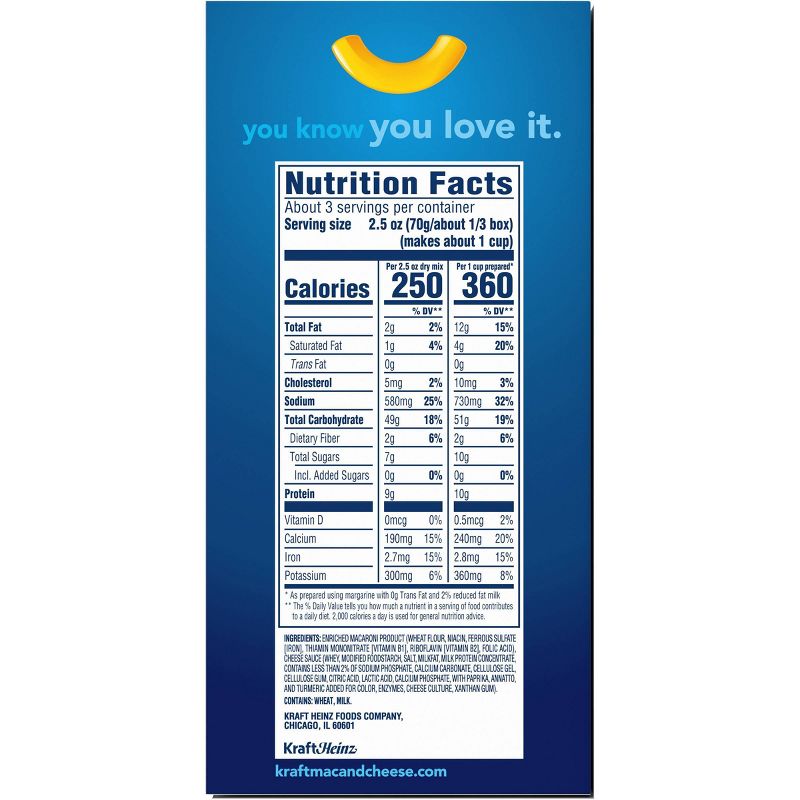 No need to worry about running out of mac and cheese before your next grocery run. Now, parents can stock up for meal time with our multi-pack size of Kraft Thick'n Creamy Macaroni & Cheese Dinner. Try out this 4 count box as a convenient way to load up on delicious boxed dinners. Both parents and kids will fall in love with the thicker texture of our Thick'n Creamy Macaroni and Cheese. People love the rich taste of macaroni pasta mixed with thick and creamy cheddar cheesy goodness. Each easy dinner includes a box of pasta and thick'n creamy cheddar cheese sauce mix, so you just need milk and margarine or butter to make an easy lunch or dinner. With no artificial flavors or preservatives and no artificial dyes, this macaroni and cheese always makes a great family dinner choice. Preparing boxed mac and cheese is a breeze. Just boil the noodles for 8 to 10 minutes, drain the water and stir in the powdered cheese mix, milk and margarine or butter. This multi-pack includes four 7.25 ounce boxes. Each 7.25 ounce box makes about 3 servings.