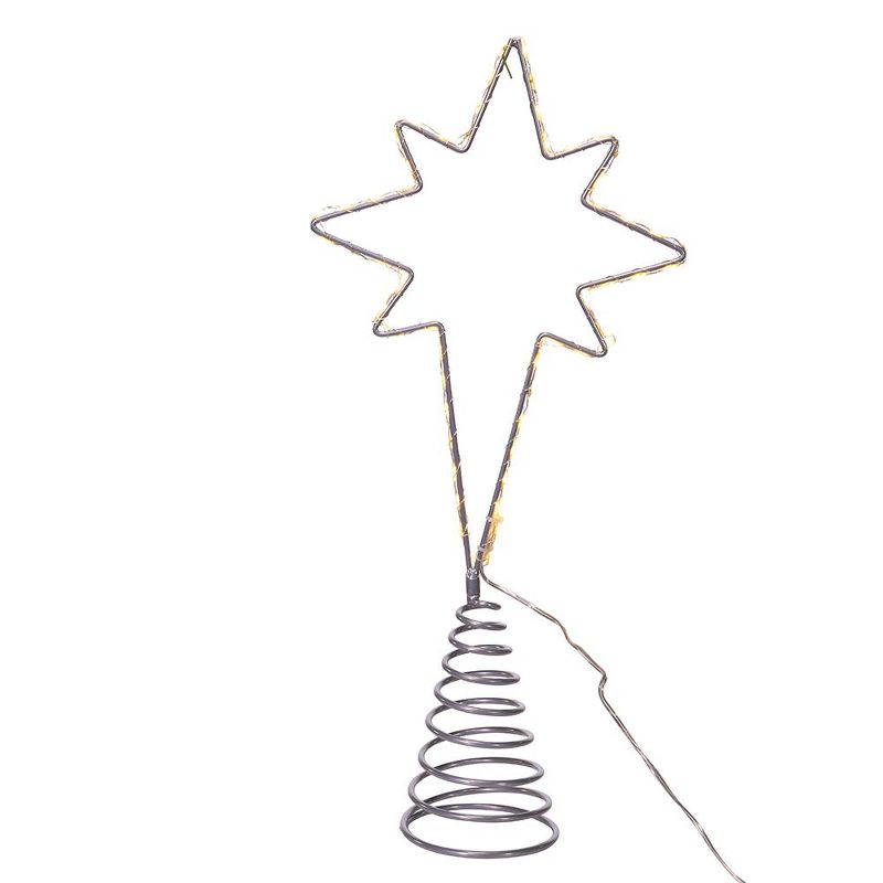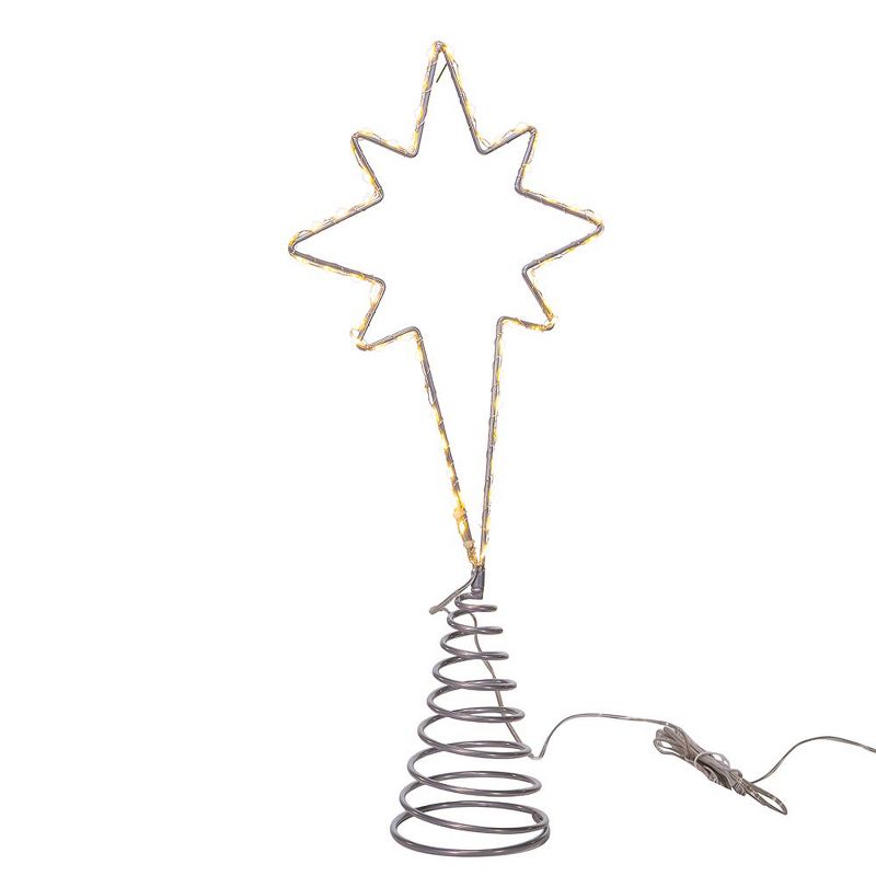 This 60-Light 11.8-Inch Bethlehem Star Twinkling Treetop from Kurt Adler is an eye-catching adornment for your Christmas tree. This treetop features a modern wire design and 60 twinkling warm white lights to make the top of your tree really glow. It includes .63" LED bulb spacing and an a 118-inch lead wire. This treetop is for indoor use only.