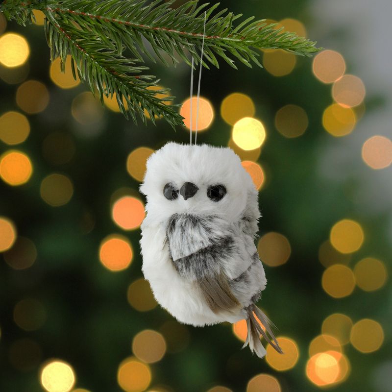 Hoots and toots, it's holiday! From Winter's Bloom collection, this adorable ornament is sure to spark conversation. This owl ornament is white and gray with brown feathers, there are black beaded eyes and a beak for a nose his head is turned to the right, make it seem like the owl is staring right at you. Display on your tree or pair with other decorative items to create a unique decoration