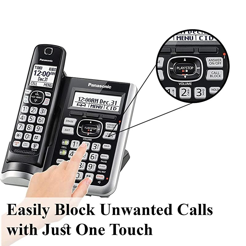 Size: 6 Handsets Talking Caller ID Hear whos calling from across the room. The Talking Caller ID feature uses text-to-speech technology, announcing the callers information in between rings. Large LCDs for Easy Readability Quickly and easily read numbers, alerts and calling info in any light conditions on the both the large 2.5 -inch LCD screen on the phone systems base unit and 1.8 -inch LCDs on every handset. Block Unwanted Callers With a dedicated Call Block button on each handset, it's easy to block telemarketers, robocalls and other bothersome caller numbers. Even while the phone is ringing or while you're talking or listening. Secure, Long-Range Signal Designed with DECT 6.0 Plus, the system ensures clear sound and added reliability throughout the home. DECT 6.0 also provides signal security to deter eavesdropping and won't interfere or conflict with routers or other devices.