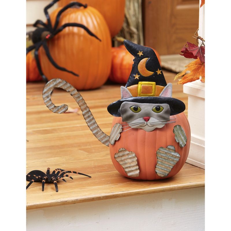 Make decorating for Halloween a little simpler by removing the mess of cutting pumpkins or following difficult templates. This set of pumpkin decorating stakes is made to resemble a cat wearing a witches hat. Place each stake piece into the pumpkin and create the image of a cat. Metal kit includes 6 pieces: Face: 8-1/4"W x 2"D x 10"H - Tail: 4-1/4"W x 1/8"D x 10-3/4"H - Hands: 2-3/4"W x 1-3/4"D x 2"H, each - Feet: 2-3/4"W x 3-1/2"D x 2"H, each.