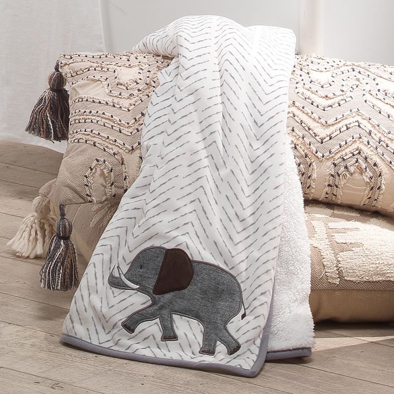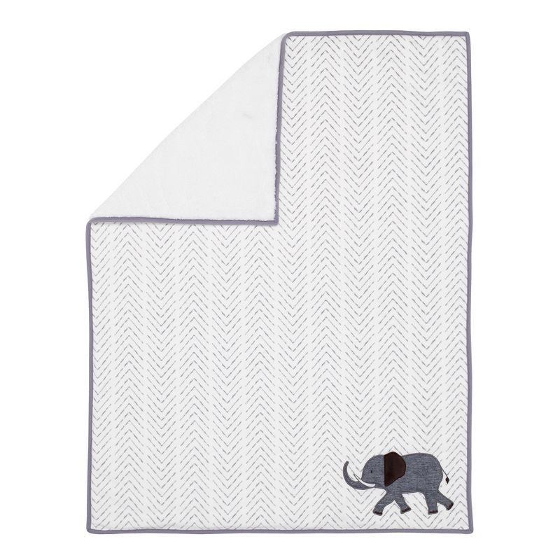 Your little one will love being cuddled in this soft minky gray chevron blanket. The back of the blanket is a cozy white Sherpa and the binding is gray. There is an applique heather gray elephant in the bottom right hand corner. The blanket is 30” X 40” and makes a great shower gift and is perfect for running errands, going to grandma’s house, or to the park.