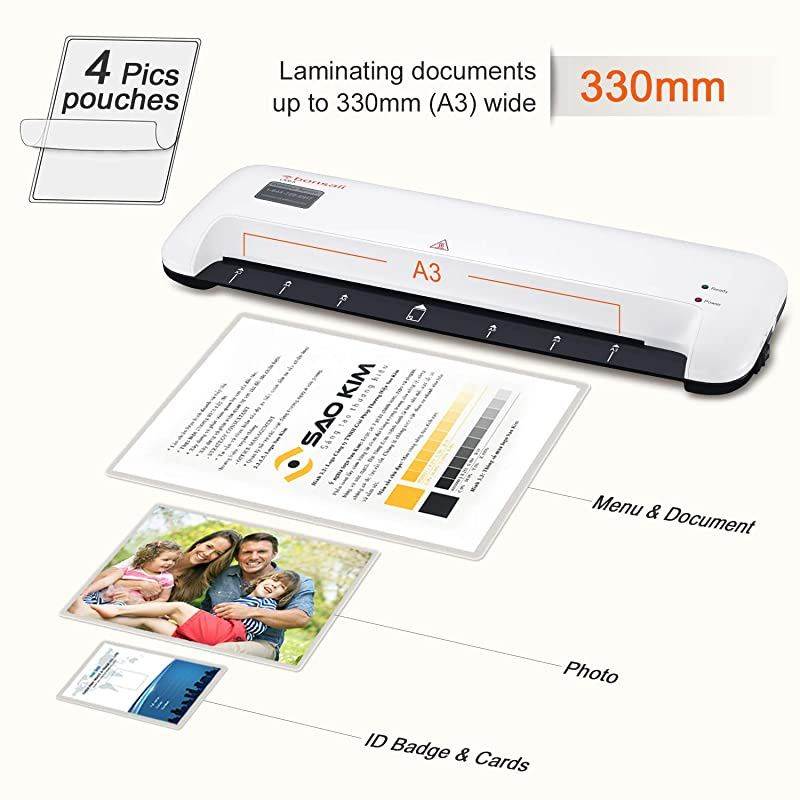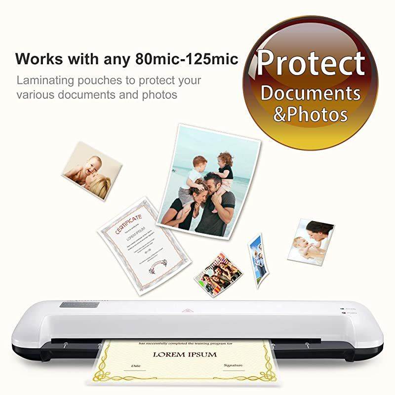 ***** **********Best Quality Guranteed. *****Fast Preheating and Quick Laminating - large machine is compatible with 13 inches paper, and warms up shortly with 3-min with Ready light on. Its laminating speed reaches 12inches/min (300mm/min) to save your valuable time and boost efficiency. *****Great Helper for Your files - Supported both hot and cold lamination, choose the laminating sheets of appropriate size (3-5mil) to lay your files. It is nice for protecting your documents, photos, cards, posters, painting away from losing their color and getting air bubbles, wrinkles, and smudges.