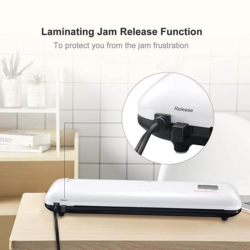 *****ABS Inserted to Release Jam - Please switch to OFF, press ABS button firmly with one hand and effortlessly pull the paper from the feed or deliver opening with the other hand if there is a position error or jammed paper when you placing the pouches. *****Low dB for Quiet Environment - Owing its low motor speed and a smooth lamination, so it will making no terrible squeaking noise when working, which