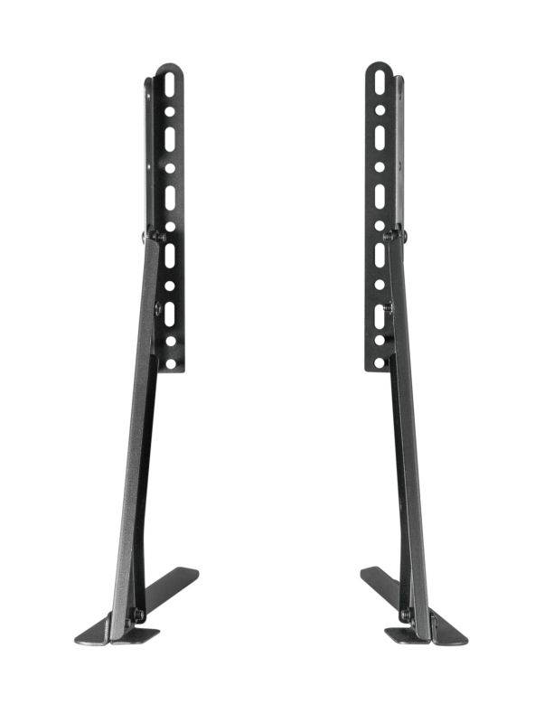 Change the way you view television. Remove the simple and outdated plastic stands that come with your display. Lift your viewing experience to new heights with an AMSF6401 Flat Tabletop TV Stand Mount Brackets. Built with quality in mind, the AMSF6401 is a stylish way to mount your TV. The AMSF6401 supports most 13”-70” displays weighing up to 110lbs and the unique design of its universal mounting brackets mean compatibility is almost guaranteed. For precise compatibility, simply check your display’s VESA pattern against the VESA range listed here. If your display’s VESA matches or falls within the range shown, then your display is compatible.