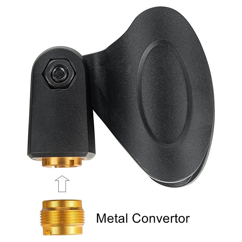 **********Quantity, 2 Pack. *****Universal, Fits Most Microphones, Dynamic Vocal Microphone or Professional Wireless Microphone, Sm57 Sm58 Sm86 Sm87 Type Microphone. *****Nut Adapters, with 5/8" Male to 3/8" Female Adapter. the female screw thread of microphone clip and the standard 3/8 -inch female to 5/8-inch male screw adapter are golden, made of metal, better than plastic. *****ABS Plastic, Black in Color, Flexible, Adjusts to MIC. *****30-day full money back guarantee, 90-day Warranty.