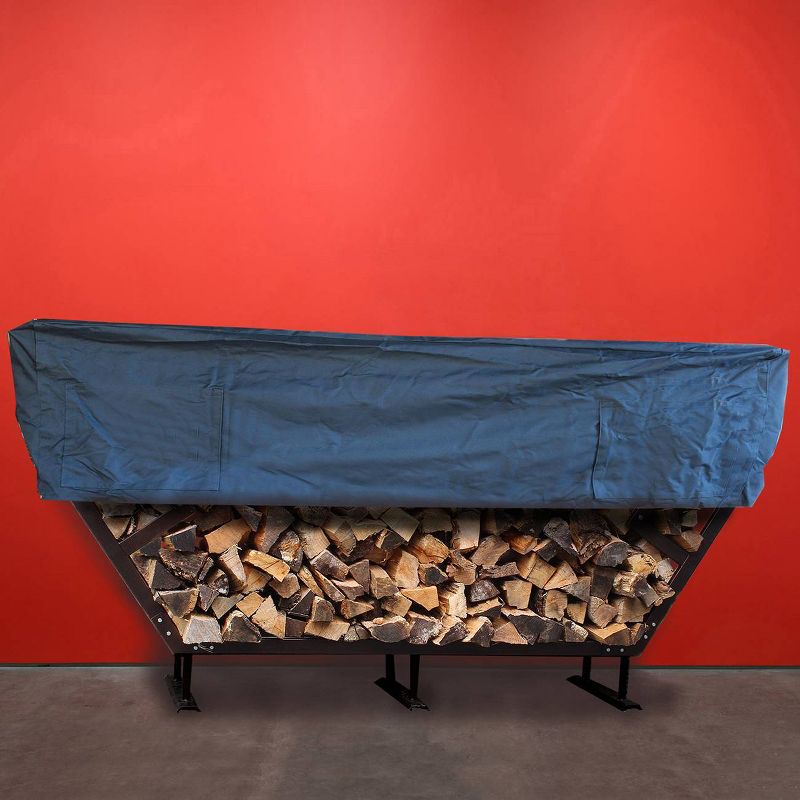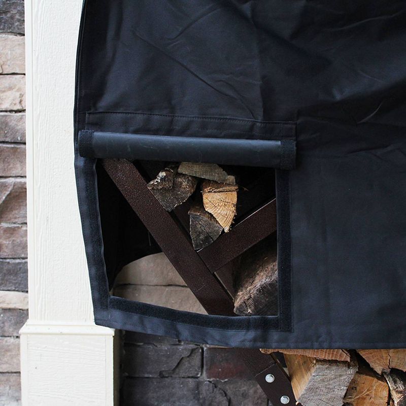 The FireKing Firewood Large Outdoor Firewood Rack is a great functional way to store and protect chopped firewood, all while adding to your outdoor home appeal . This unique modern design is built for elegance and durability. Featuring a hammered Oil Rubbed Bronze finish to help prolong the life and appeal of the powder coat finish. Helps reduce the appearance or dulling, scratches or dings created by the firewood. Features two diamond shaped areas to sort and store Kindling or starter wood. The Black Heavy duty PVC Coated Polyester Cover is water resistant and custom fitted to the design of the rack. The cover has the ability to open three ways, by pulling up the entire front of the cover releasing the hook and loop or by opening the two square flaps conveniently located in front of each kindling storage. The Firewood Rack cover is designed to be shorter than the entire stack of wood to allow airflow through your wood pile allowing the air to circulate and wood to dry.
